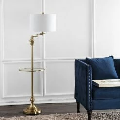 Buy ๐ 3-Way Cal Lighting Gail Double Gooseneck Floor Lamp With Glass Table And Charging Ports โ