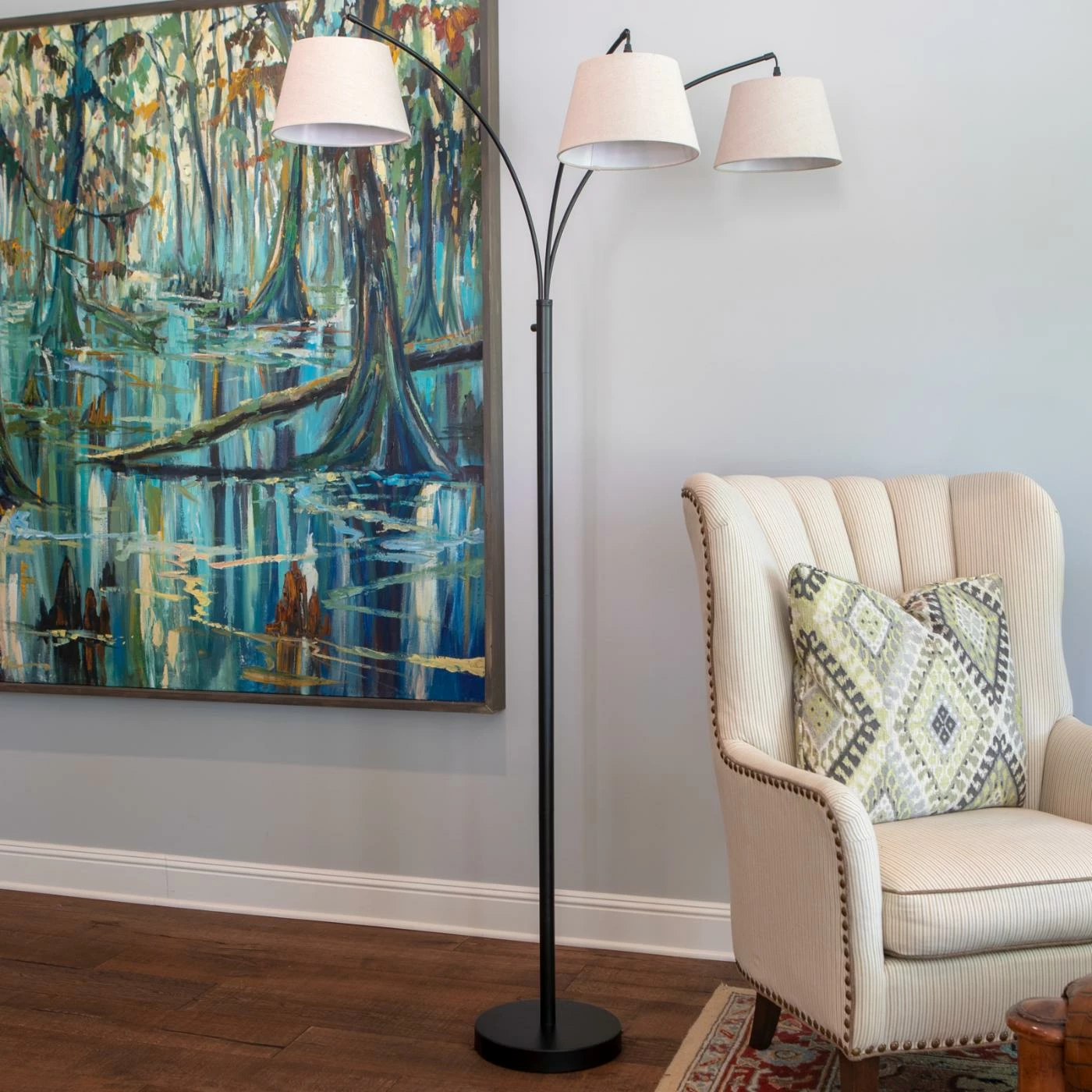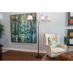 Illumination is one of the most powerful design tools at your disposal, and the Decor Therapy Ashbury 3 Arm Floor Lamp is the kind of piece that can easily transform a space. This three-shaded lamp has a slender, steel body with three arms supporting three hard backed shades. Each shade glows with the inviting light that comes from your choice of 40-watt bulbs. Please choose from available finish options.