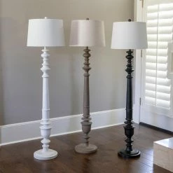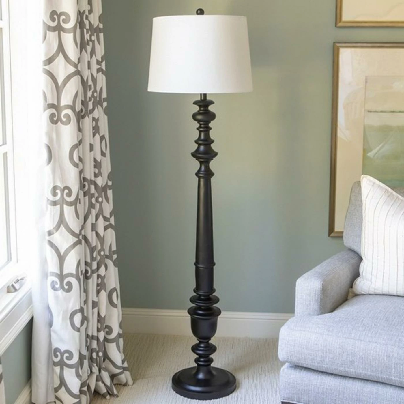 The Decor Therapy Benjamin Floor Lamp has the look of a piece that’s come straight from the craftsman’s workshop. The body shows off dynamic curves and details cast from resin with a satin finish. The fabric-covered, hardback shade sits atop a single 150-watt bulb. Please choose from available finish options.