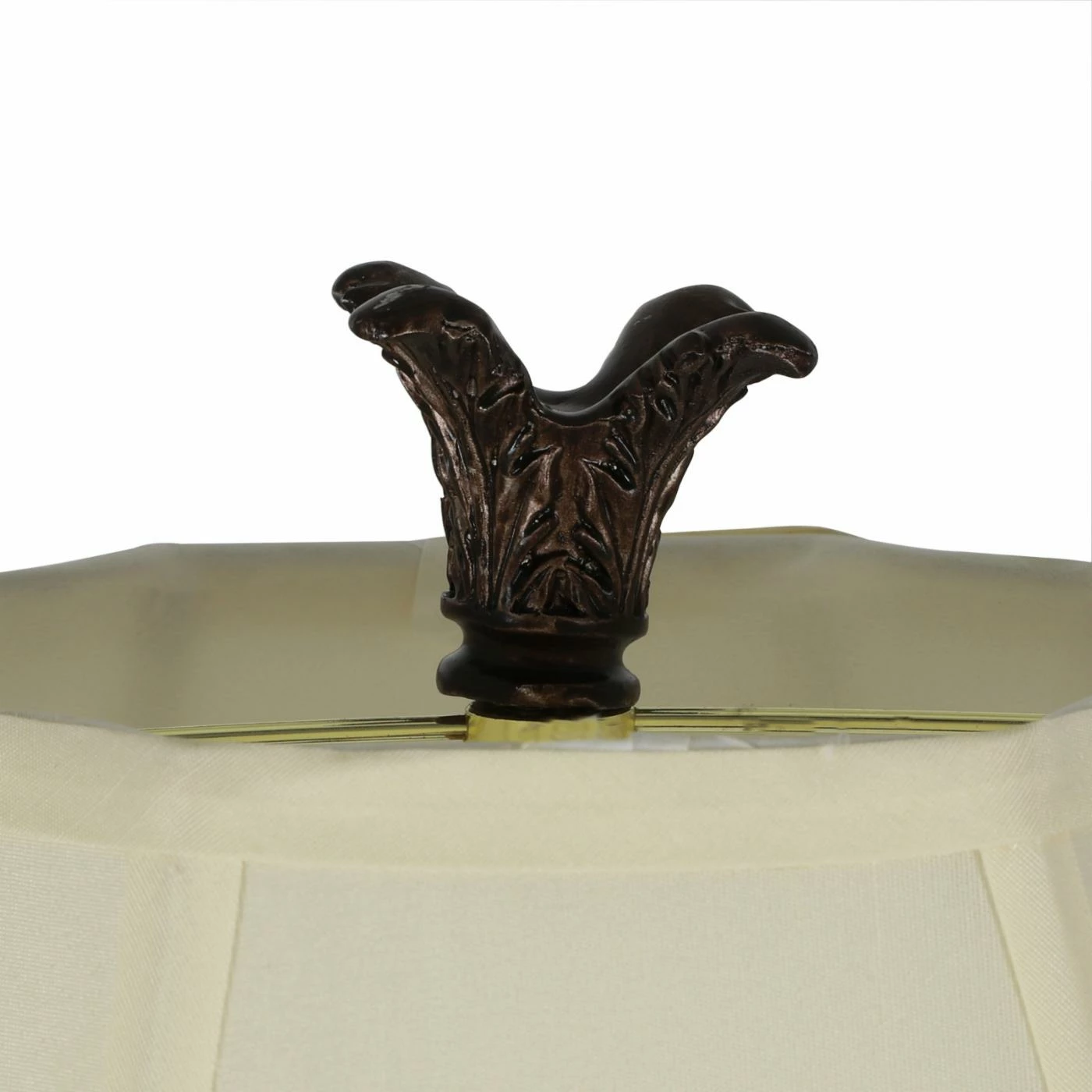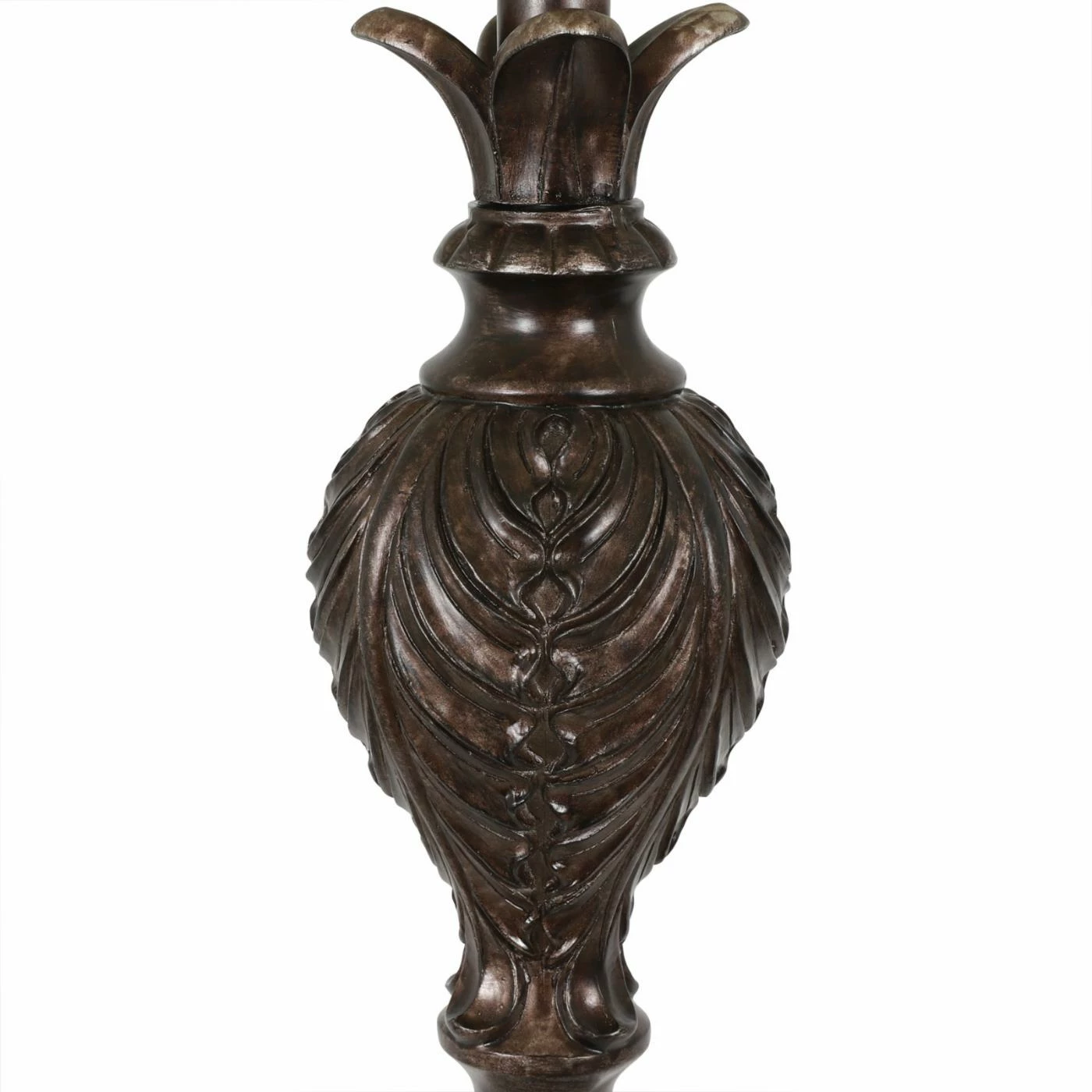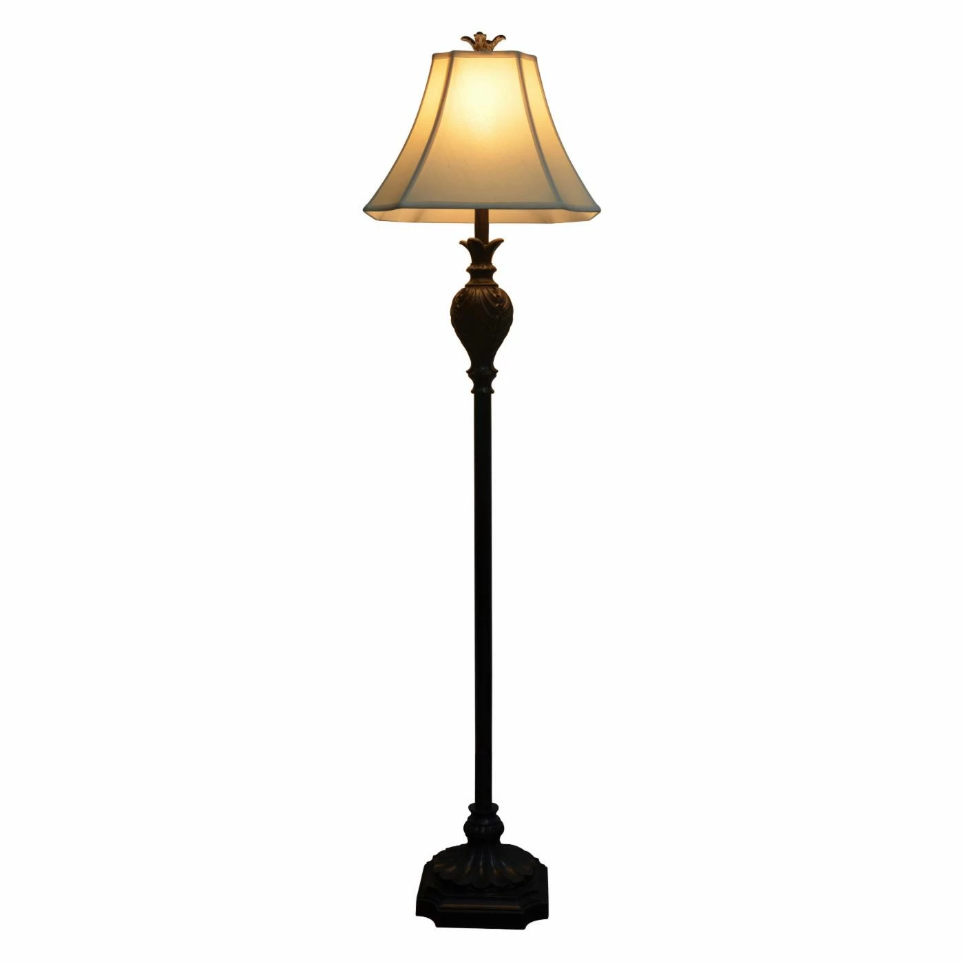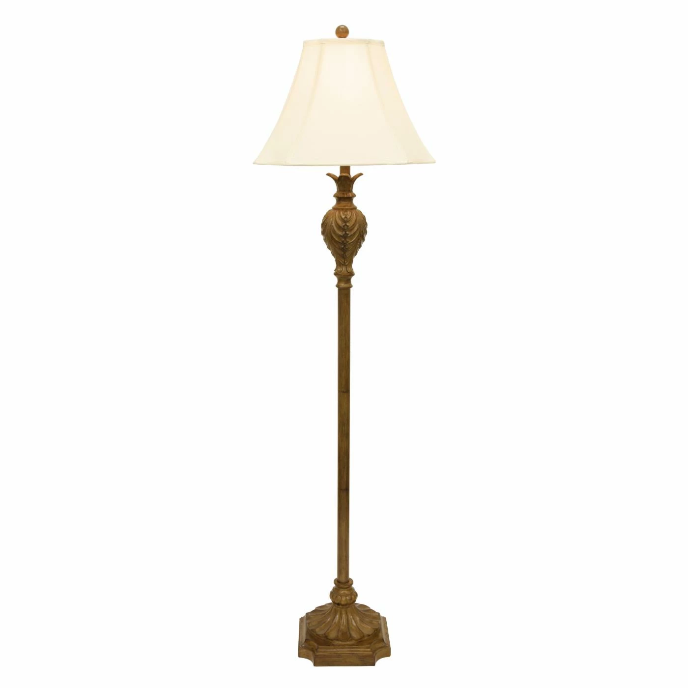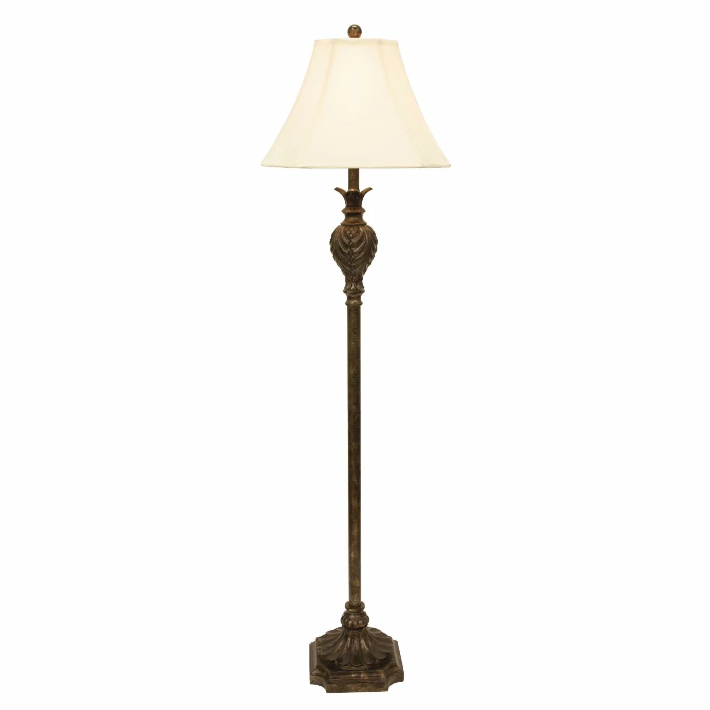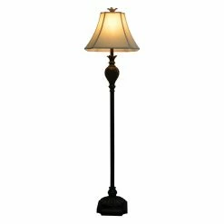 The Decor Therapy Roland Carved Resin Floor Lamp is classically appealing, making it a great addition to transitional, traditional, and rustic homes. This floor lamp is cast from durable resin material and features an intricate design below the shade and pedestal-style base. The fabric shade is crafted from faux silk in a light cream hue. The floor lamp is outfitted with a three-way rotary switch, making it ideal for your office or reading nook. Choose from available finish options to best suit your style.