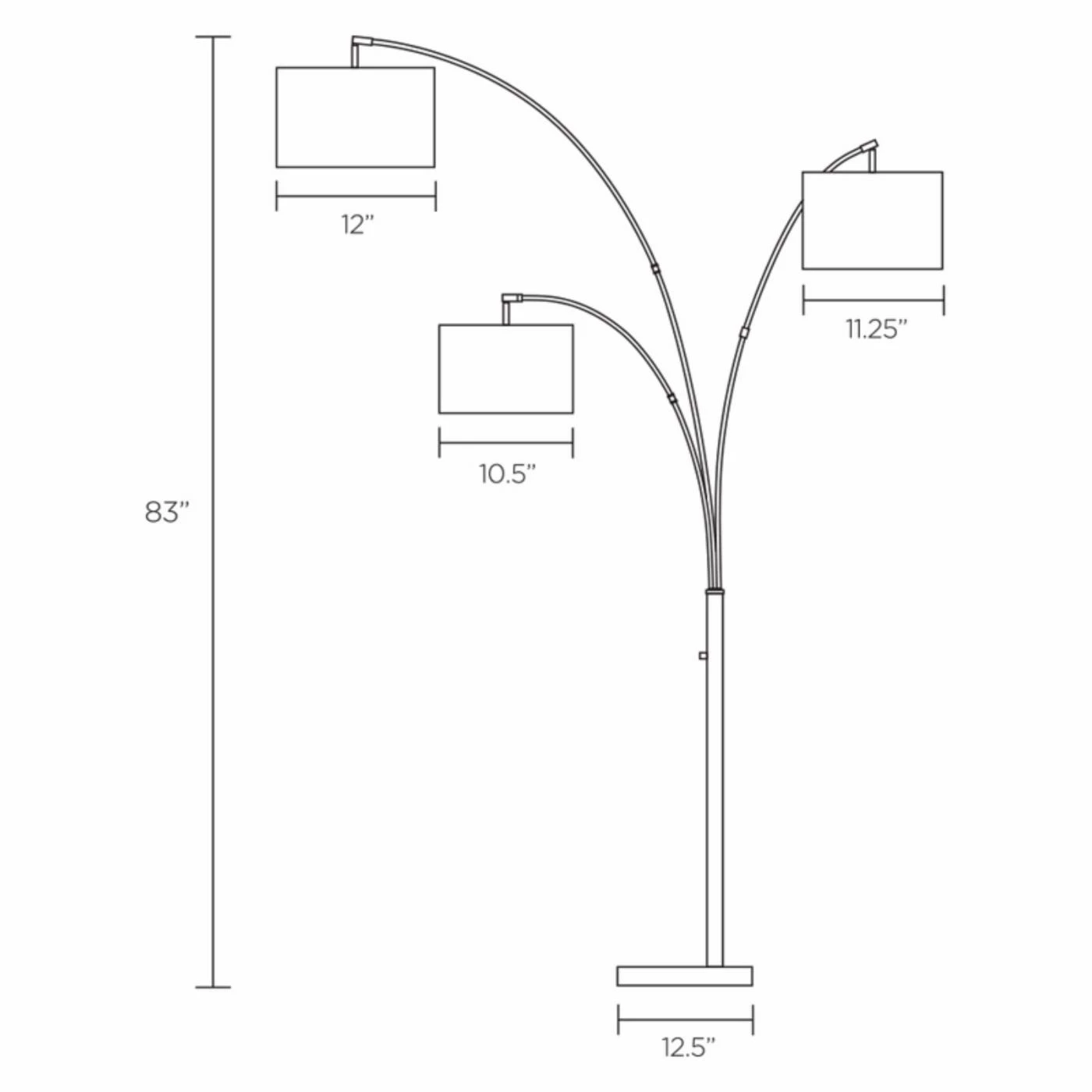 A trio of fabric drum shades and an arched design make the Adesso Bowery Floor Lamp perfect over your sofa. The post body comes in select finish options and this floor lamp is graced by a white marble base. It requires three 60-watt incandescent bulbs (not included).
