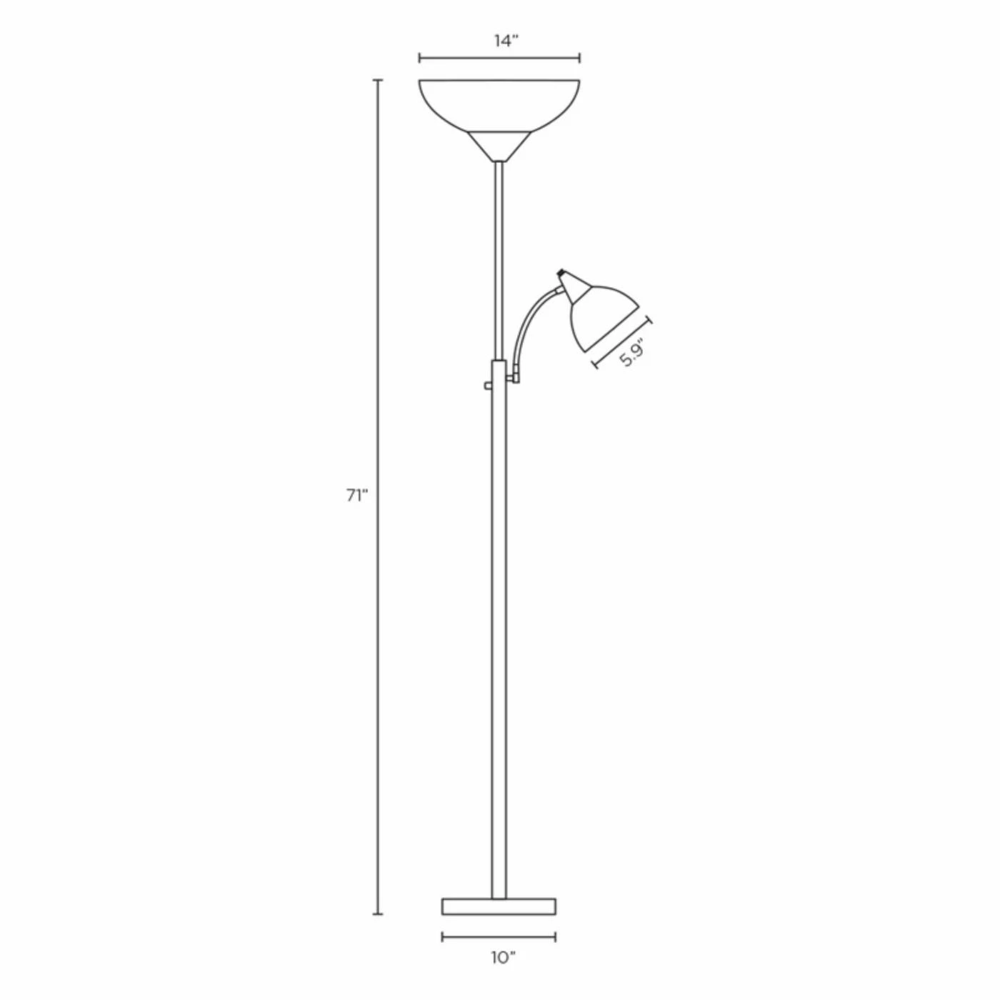 - Requires two 150-watt bulbs for upper torchiere and one 60-watt medium-base bulb for reading lamp (not included)