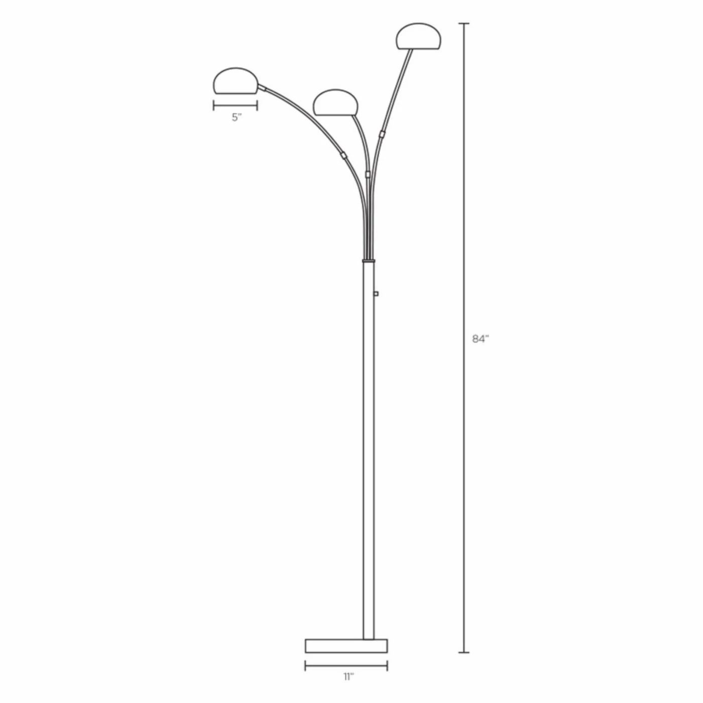 Don’t let the small shade size fool you. The Adesso Lighting 5118-22 Domino Arc Floor Lamp can easily light up a room with the three high-intensity bulbs (included). The sturdy metal pole base holds up the three curved extensions that hold the three 5-inch round metal shades. The lamp is controlled with a rotary switch on the pole and is smart outlet compatible.