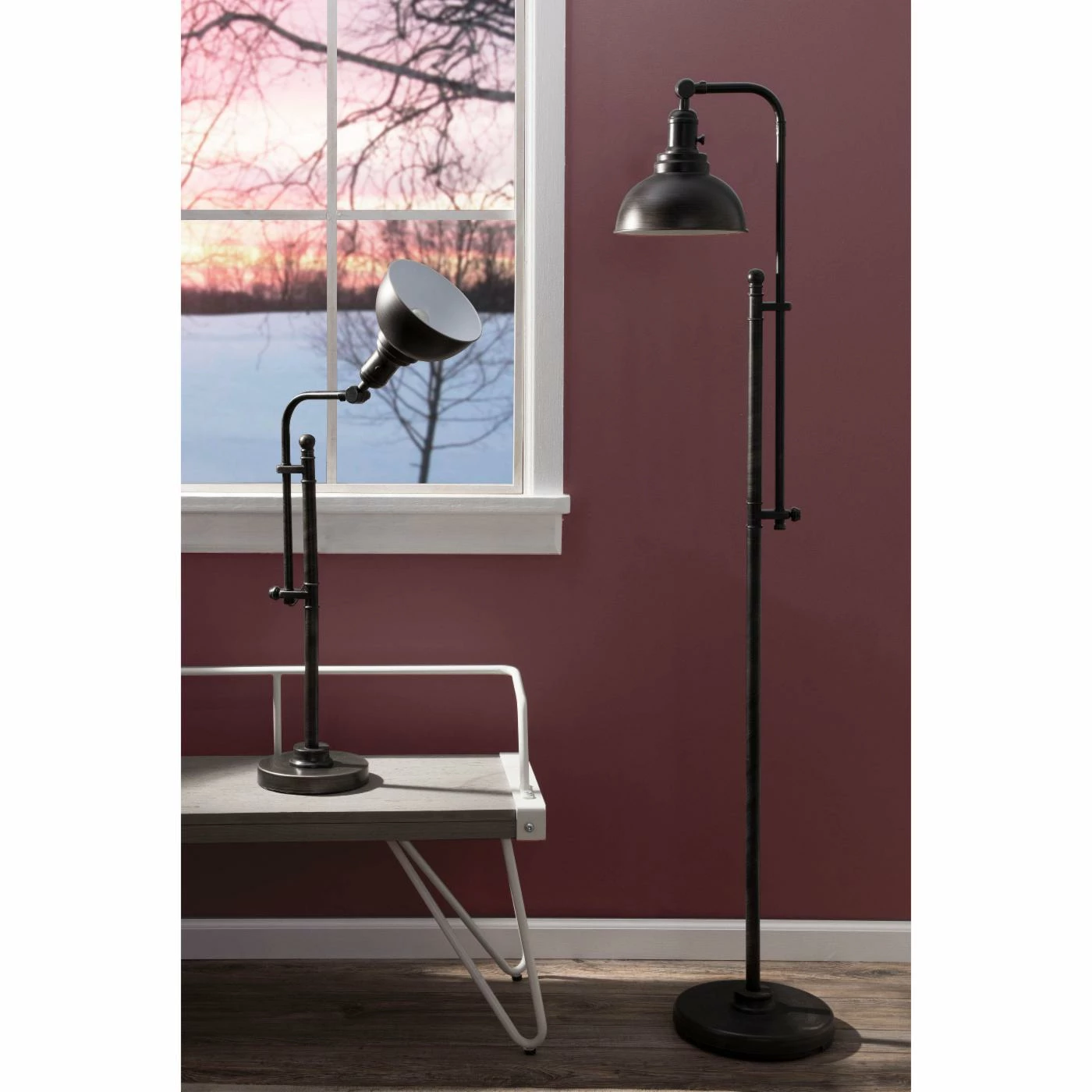 Enjoy the slim, sleek design of the LumiSource Emery Floor Lamp in any room in your home. This all metal lamp can easily be raised or lowered to adjust the height. A bell shaped shade focuses the light downward. The lamp is finished with an antique silver. An inline foot switch makes turning the lamp off and on easy. The lamp requires a 60 watt bulb (not included). This versatile, contemporary lamp is sure to blend well with any dΓ©cor.