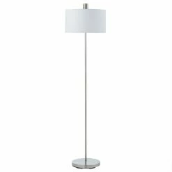 Standing over five-and-a-half feet tall, the Weston Home Spacet Contemporary Brushed Steel Floor Lamp is a great lighting choice to place beside a desk, reading chair, or at the side of the bed. It has a slim, rod-style body with a sharp angled neck. The silver brushed steel finish enhances it’s contemporary vibe. Plus, this lamp comes with a drum-shaped cream-white shade that’s in tune with its overall clean profile.