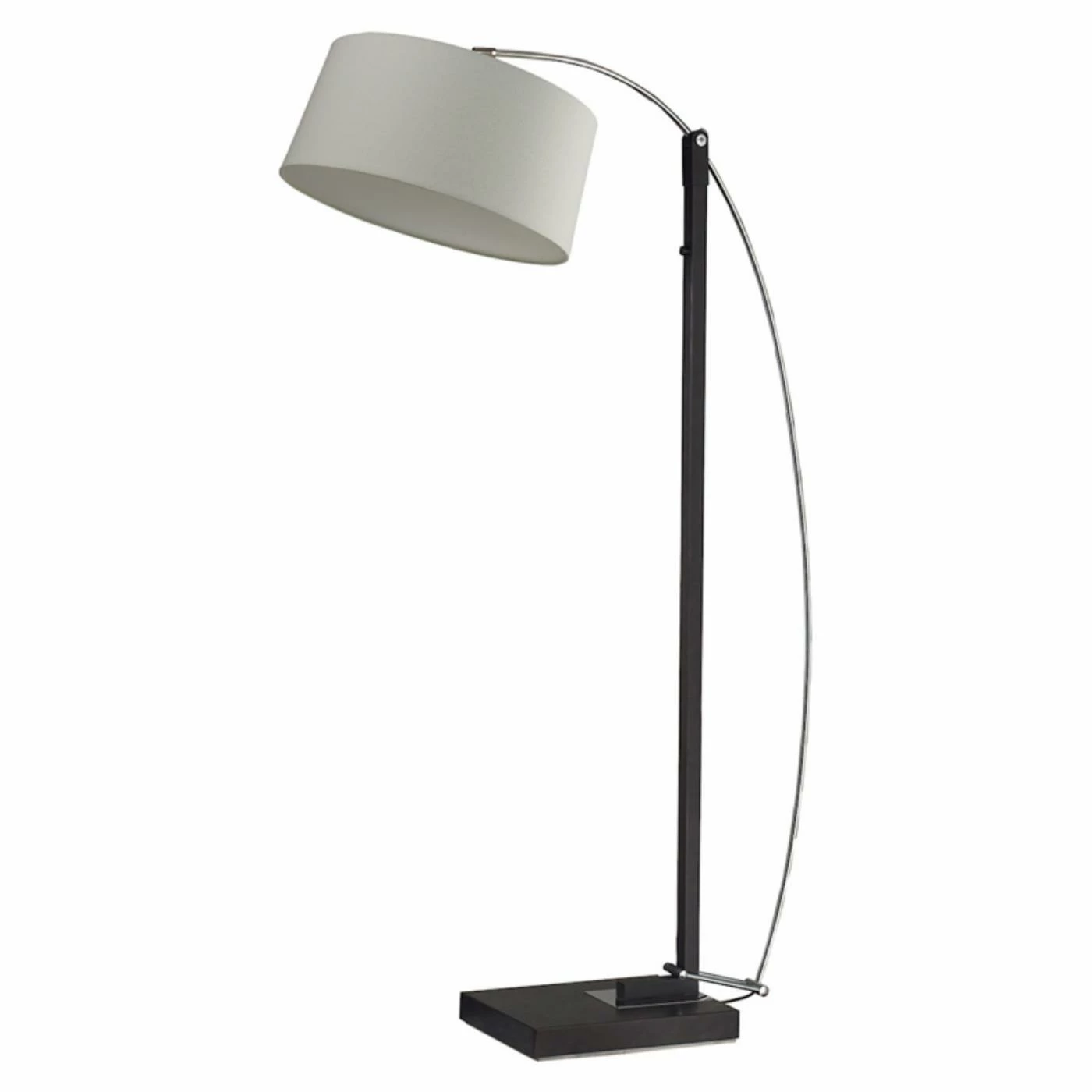 Your home will have an air of contemporary style and easy elegance with the ELK Lighting Logan Square LED Floor Lamp. Its durable metal construction features a dark brown finish accented by the off-white, linen hardback shade and slender chrome frame. This lamp has an easy-to-use foot switch and requires one 9.5 watt LED bulb (not included).