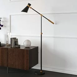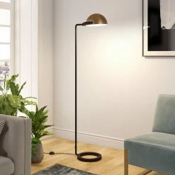 The Hudson & Canal Cadmus Floor Lamp is sure to turn heads with its brilliant copper shade and elegant dark bronze post. The minimalist design foregoes embellishment for a stately industrial-chic effect.