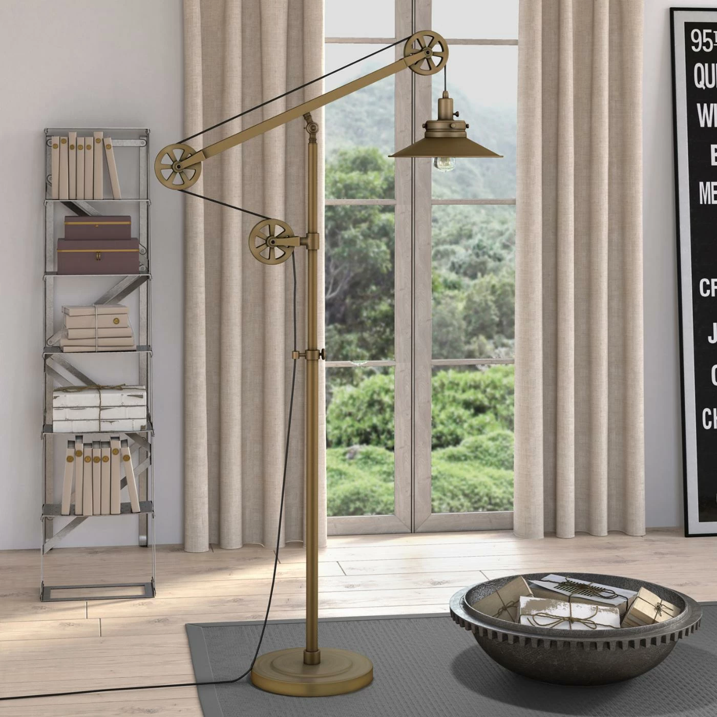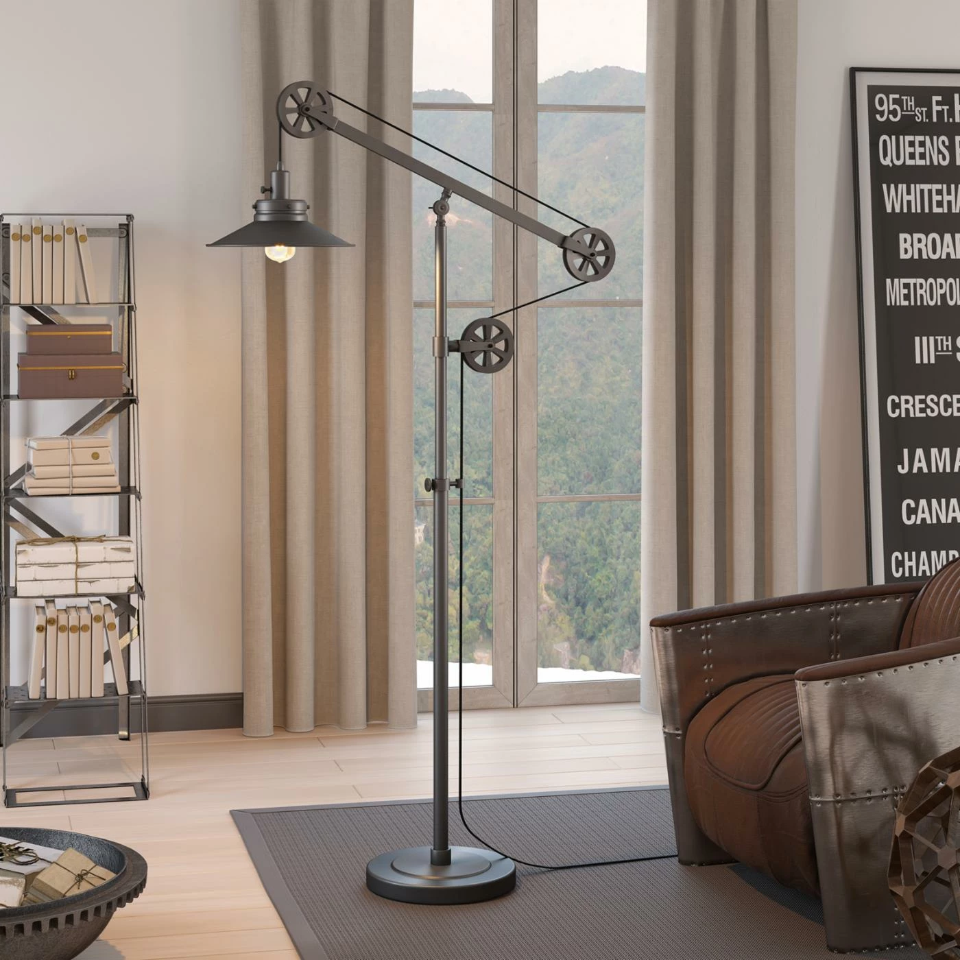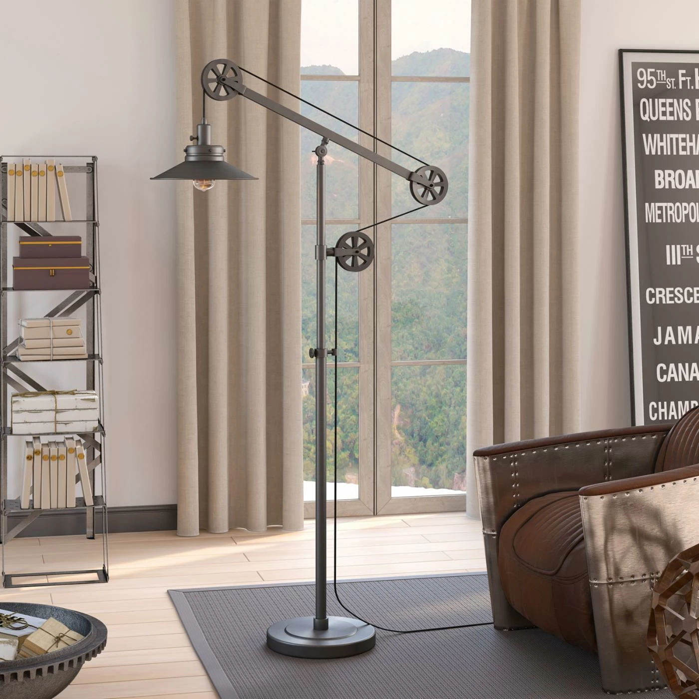 If you love industrial flair, make room for the Hudson & Canal Descartes Wide Brim Floor Lamp. This playful, inventive floor lamp features a pulley-inspired design, so you can adjust it to best suit your space. Place it near your favorite reading chair or in the corner of your study. This lamp comes with an E26-base and supports the following bulbs: 40W Type A, 13W self-ballasted, or 9W SB LED.