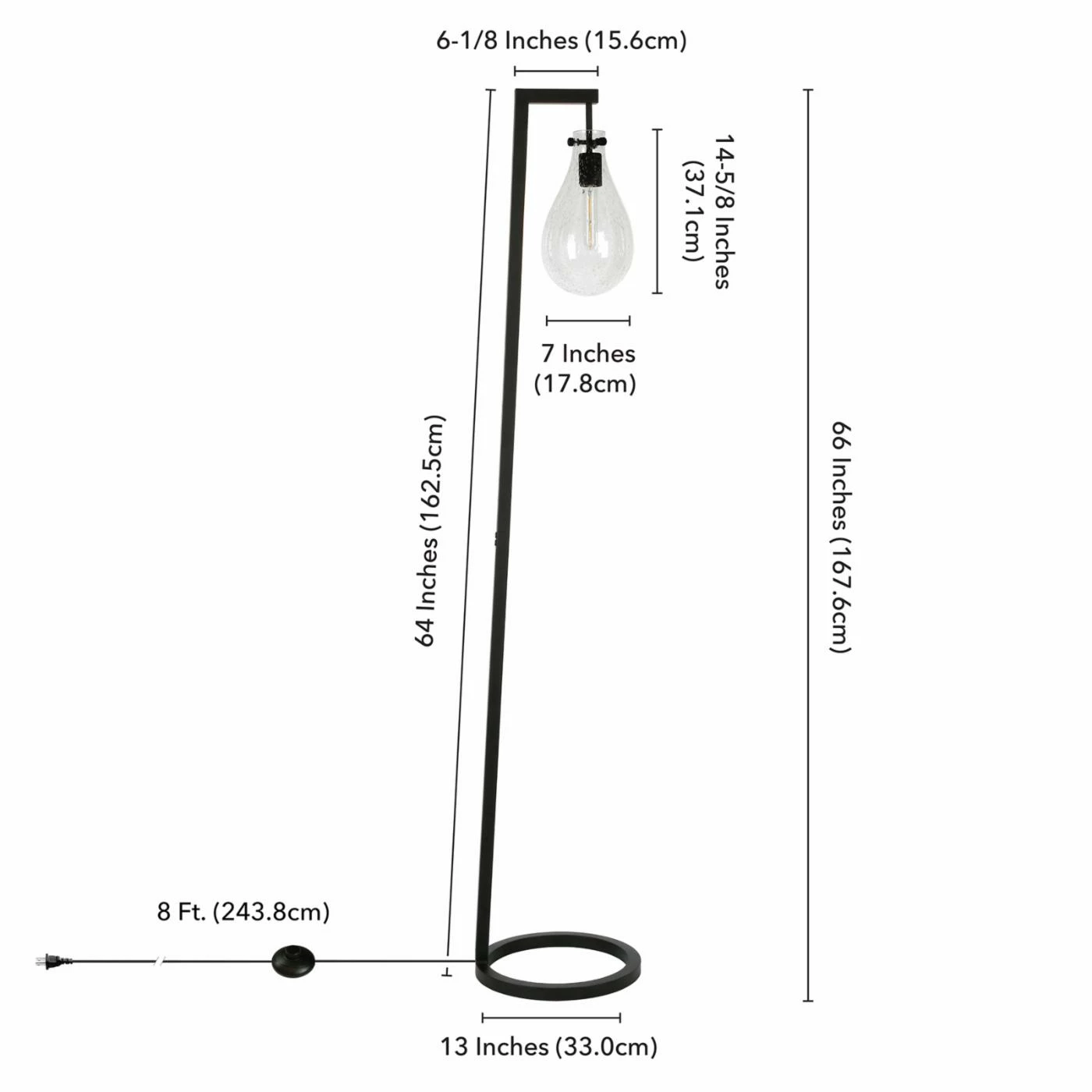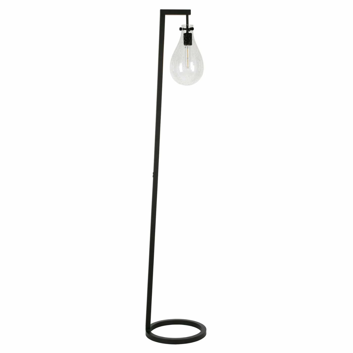 The organic aesthetic of the Hudson & Canal Anslem Floor Lamp makes it a unique conversation piece for your living room or den. A sleek metal base supports a seeded glass shade in an elegant teardrop shape. It’s industrial in style, yet refined enough to complement modern and contemporary spaces. This lamp comes with an E26-base and supports the following bulbs: 40W Type A, 13W self-ballasted, or 9W SB LED.