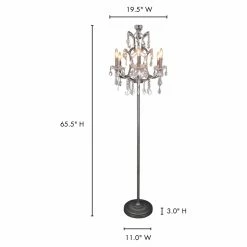 Draped in elegant crystals, the Moes Home Luisa RM-1015-17 Floor Lamp brings beautifully ornate classic style to your space. A clear finish gives this floor lamp a hint of vintage charm. Six 40-watt incandescent bulbs are required (not included).