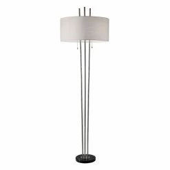 The Adesso Anderson Floor Lamp showcases an elegant silhouette thatβs perfect for your living room or bedroom dΓ©cor. The three brushed steel poles extend up from the black marble base. A white fabric shade provides a decorative accent and helps diffuse the light from the two 100-watt bulbs (not included).