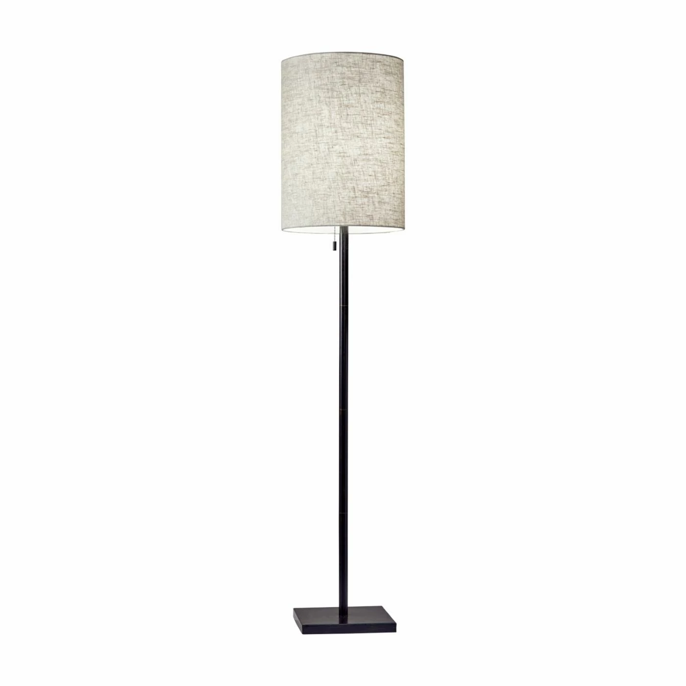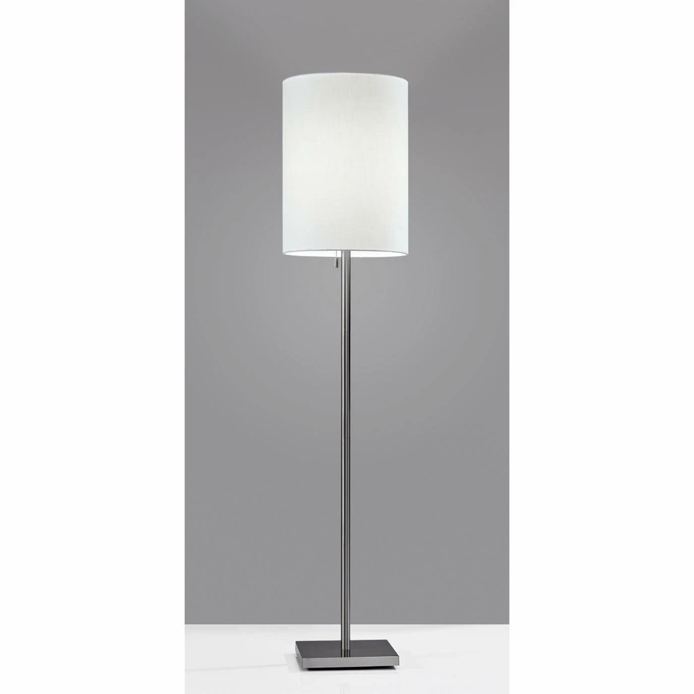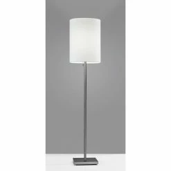 Crafted from metal, the Adesso Liam Floor Lamp boasts a sturdy base in a square shape that allows it to fit well into corner spaces or open areas. This floor lamp is topped by a tall drum shade made from white fabric, ensuring a glow that’s bright and inviting. The single bulb of this floor lamp is operated by a classic pull chain, giving it a touch of vintage inspiration. The 6-ft. cord gives you plenty of leeway when it comes to placing this floor lamp in your living room, den, or home office.
