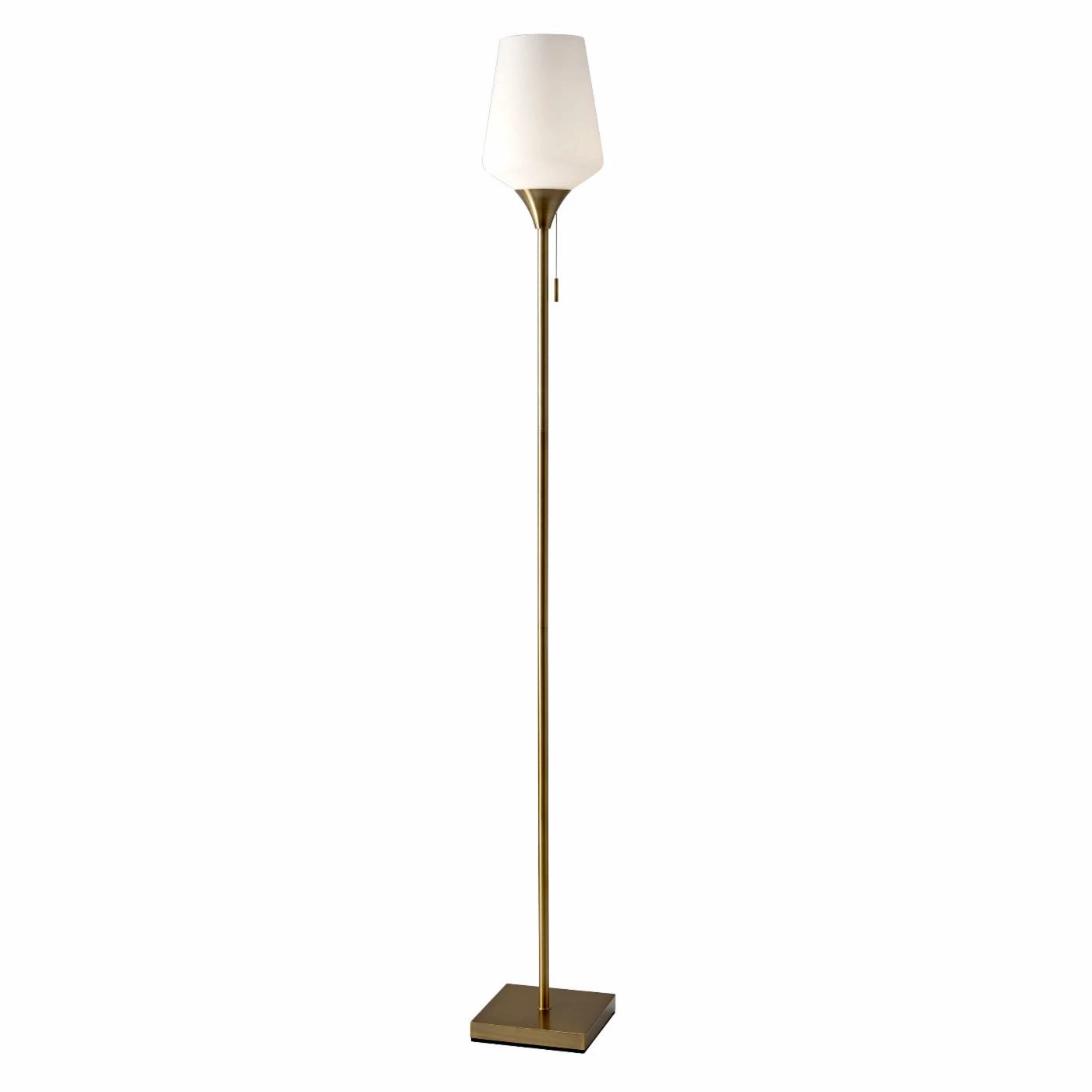 Brighten any room with the Adesso Roxy Floor Lamp. Featuring a thin, simple silhouette, this floor lamp is topped with an opal white glass shade. The square base provides sturdy support. The 100-watt bulb (not included) can be turned on and off by a simple pull chain switch.