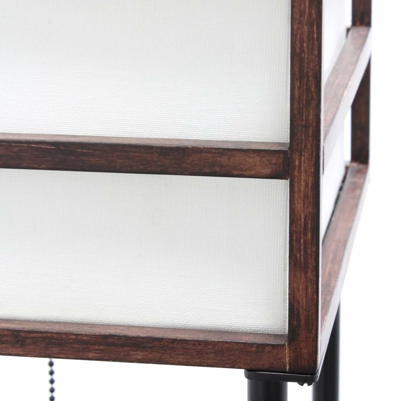 Illuminate your living space in style with our floor shelf lamp with linen shade. This gorgeous piece is accented with black metal and dark brown wood. The shelves are versatile and can be used to display photographs and other memorabilia while the linen lamp shade casts a soft, warming light throughout your living space. With its’ clean and modern lines, this lamp adds sophistication and style to any home’s dΓ©cor.