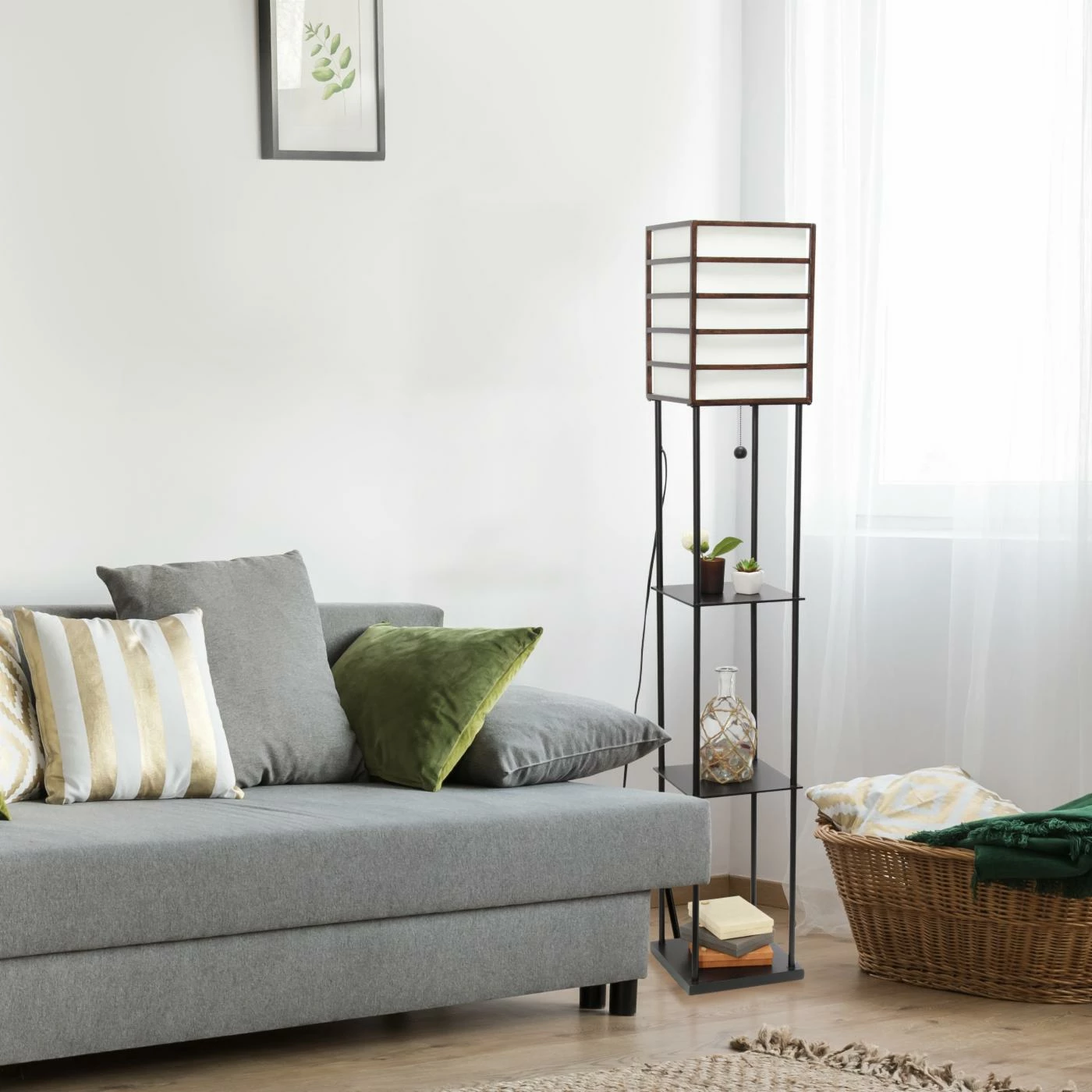 - Floor lamp with 3 shelves for storage/display