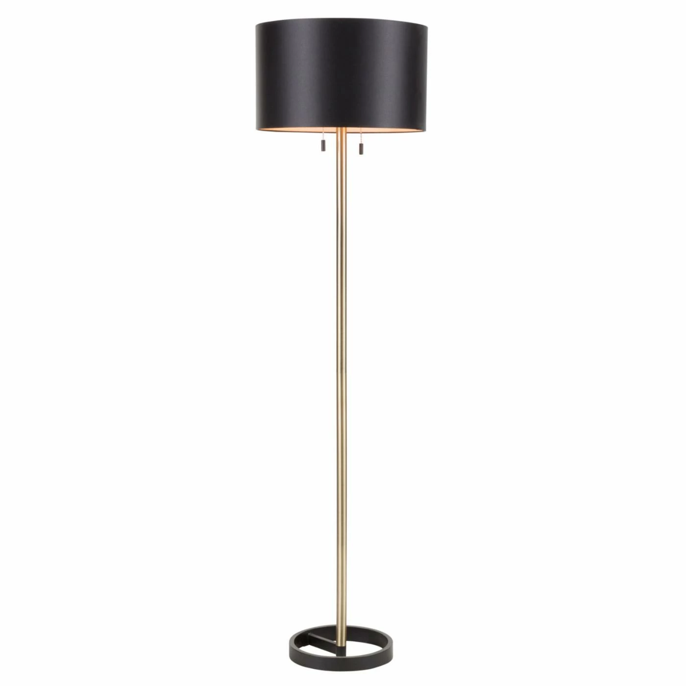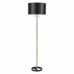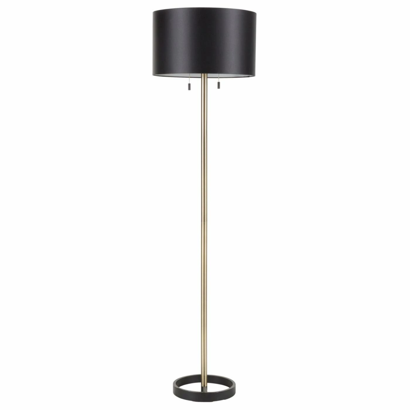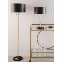 Dress up your space with the LumiSource Hilton Floor Lamp. This floor lamp has a glamorous art deco style that will elevate its surroundings. Its black metal base and shade are accented with gold details. A hanging pull chain adds a vintage touch. This lamp requires two 60-watt bulbs that are not included.
