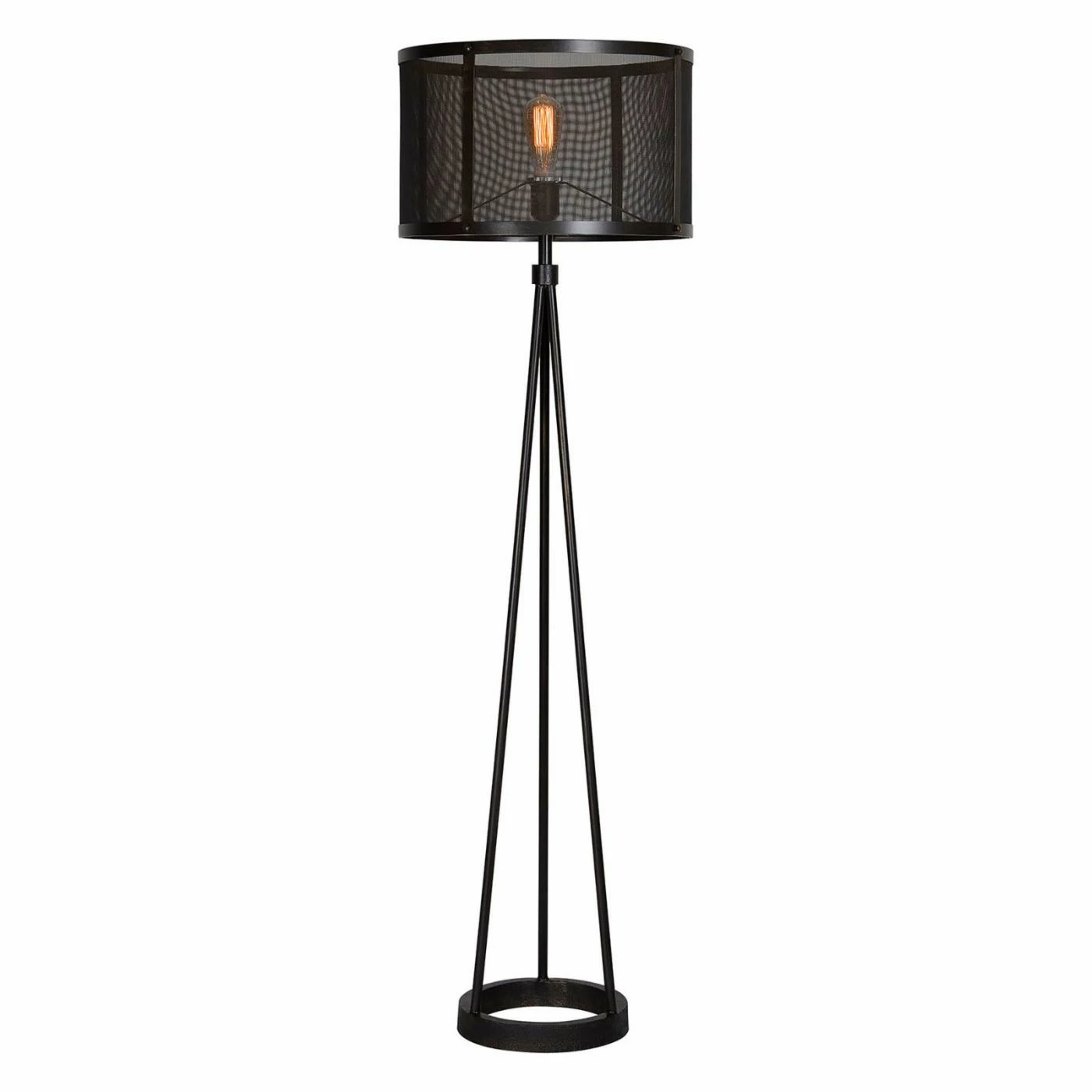 The darkly handsome Ren-Wil Livingstone Floor Lamp features a black metal tripod base and matching mesh shade that allows its Edison style bulb to peek through. This floor lamp is an original design from artist Jonathan Wilner and includes its 3-way, E27 vintage reproduction bulb.