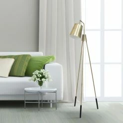 Illuminate your living space with this loft style floor lamp. It features a spotlight shaped shade in a stunning antique brass finish for a sophisiticated look while the black tripod base adds an industrial touch. Perfect for your bedroom, office, foyer or living room!
