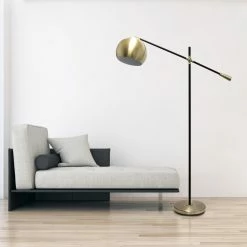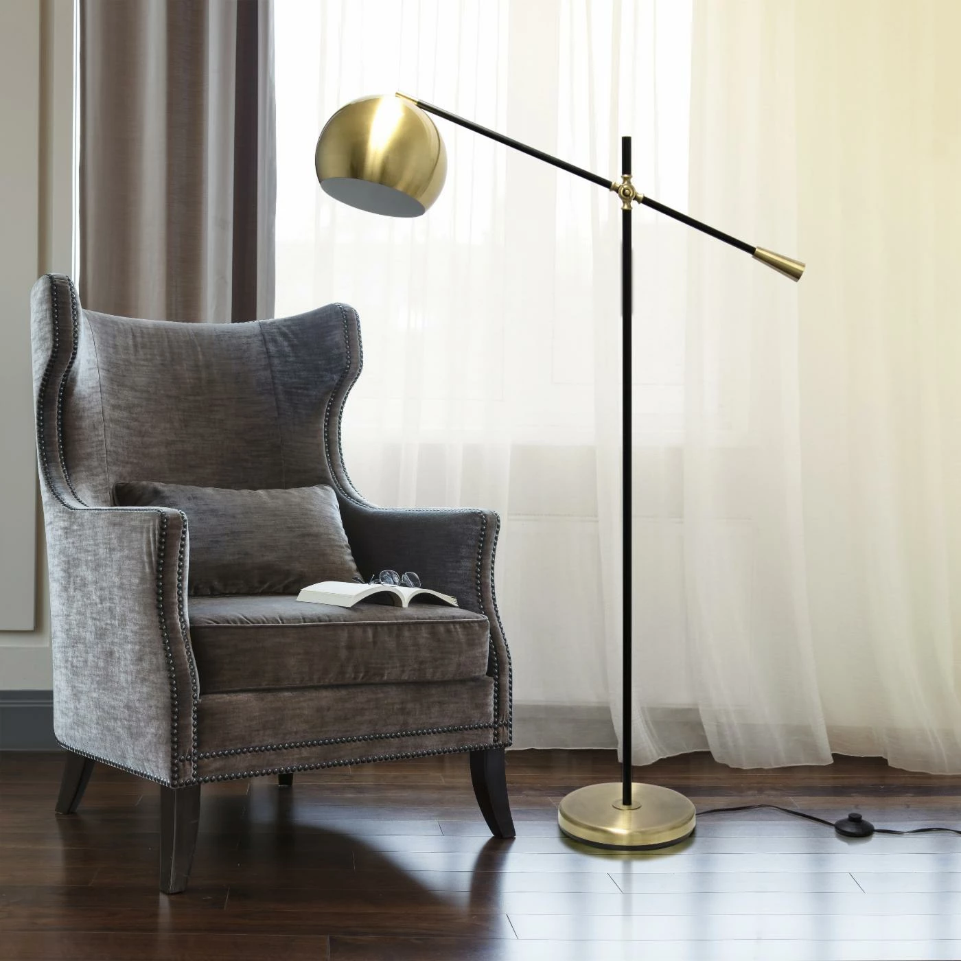Brighten up your living space with this attractive piece, accented with matte black poles and polished antique brass metal. This minimalist floor lamp features clean lines and a stylish metal dome shade. Add sophistication to your living room, bedroom, office or library with this sleek and modern floor lamp.