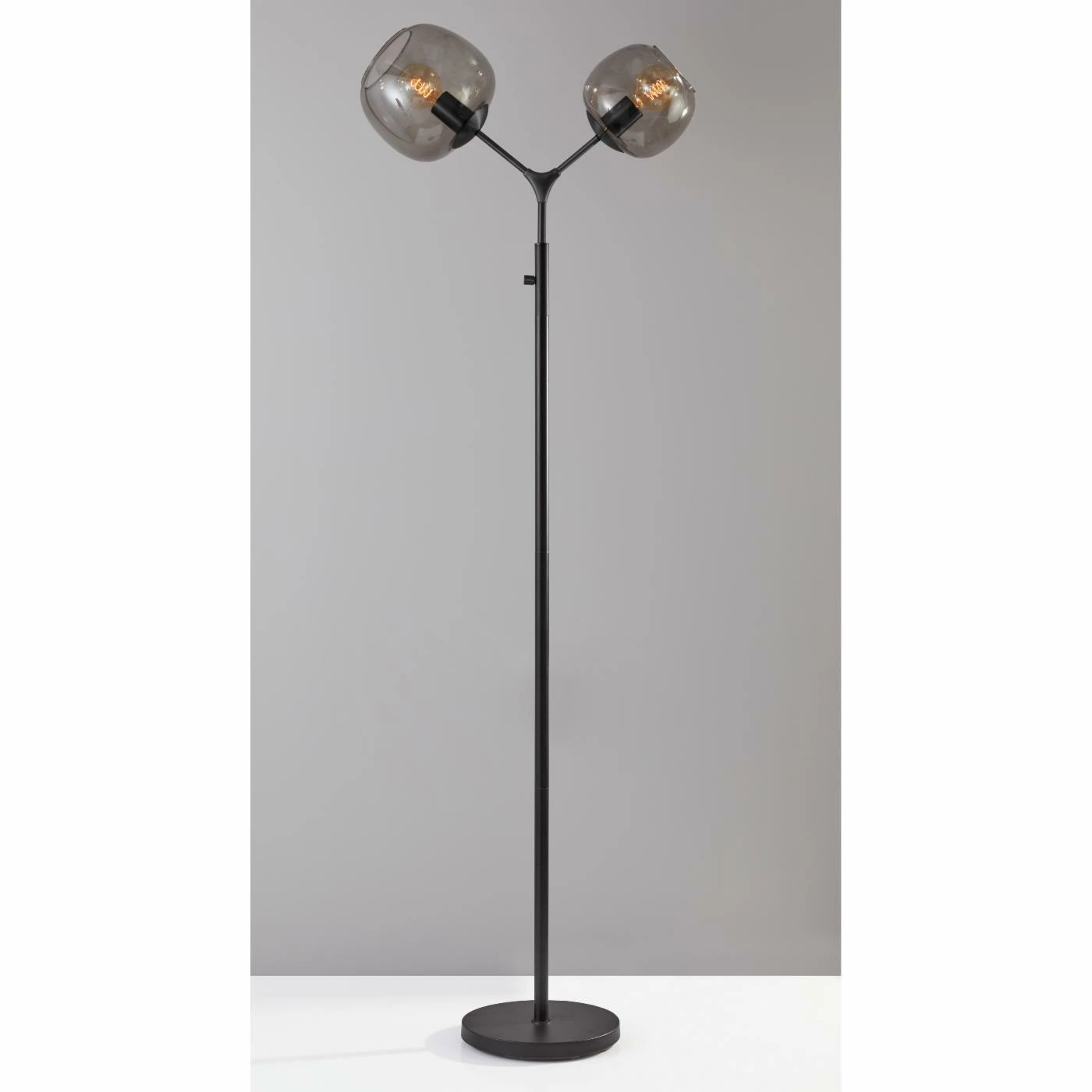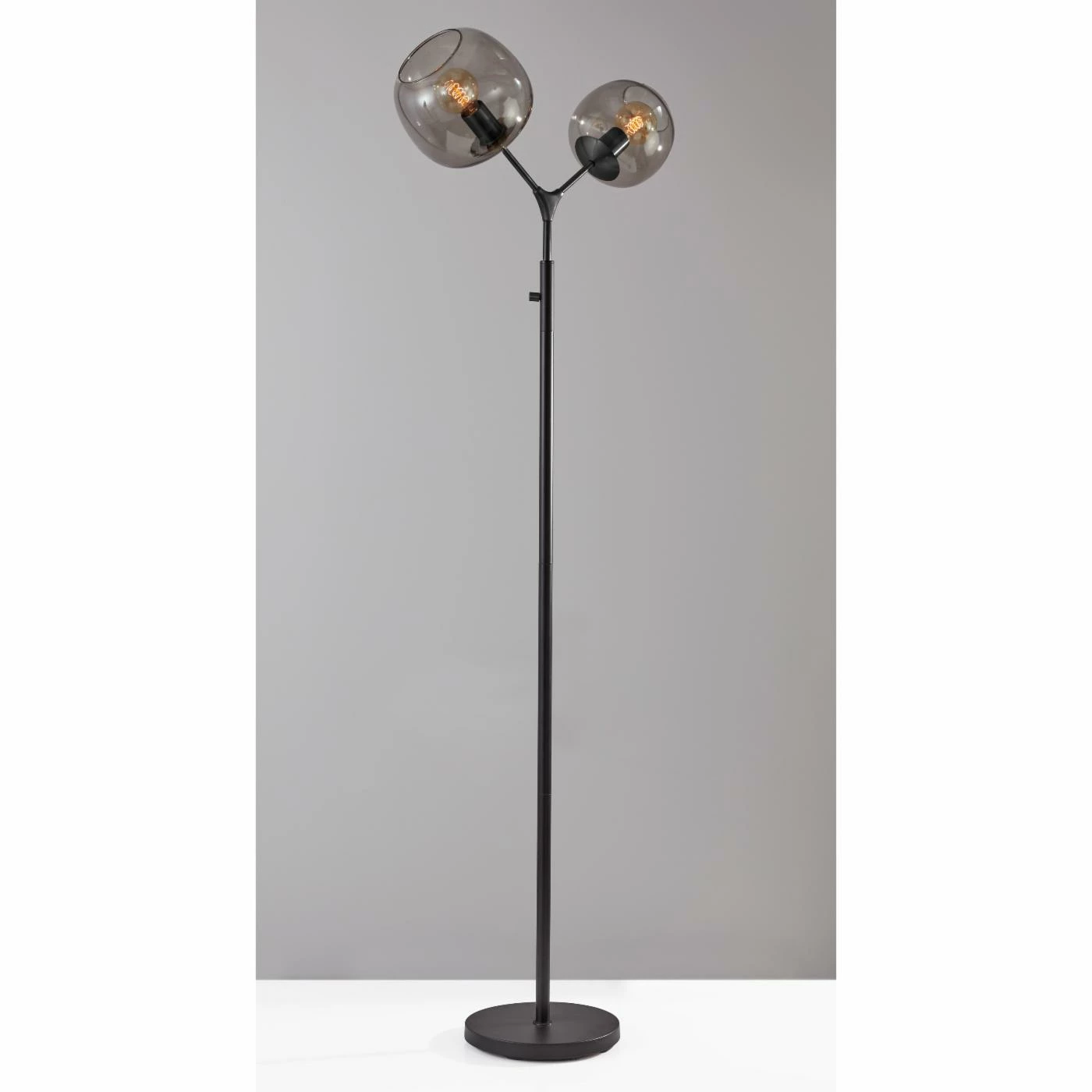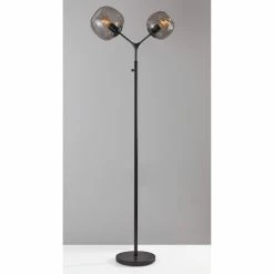 The Adesso Ashton Double Floor Lamp adds bold modern flair to your living space. This floor lamp features two inverted smoked glass shades and a sleek metal body. It operates with an on/off rotary switch and includes a 40-watt vintage-style bulb.