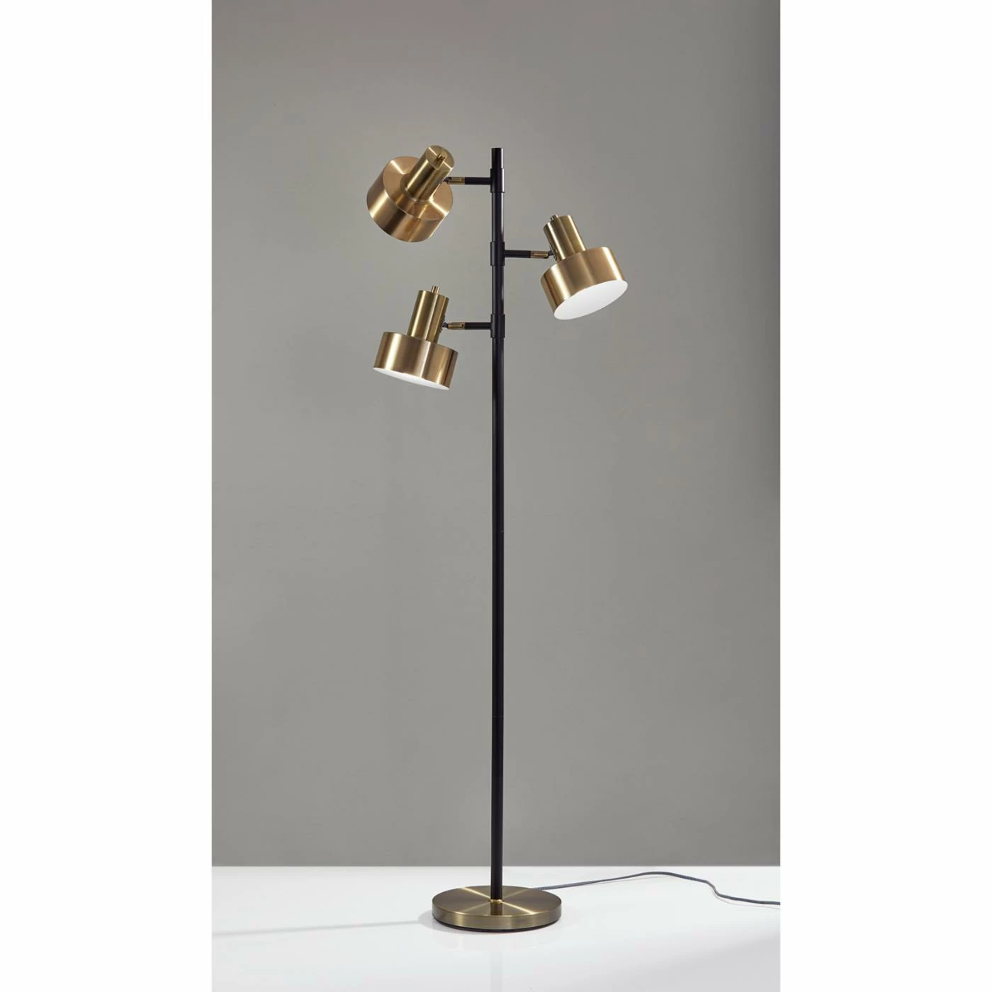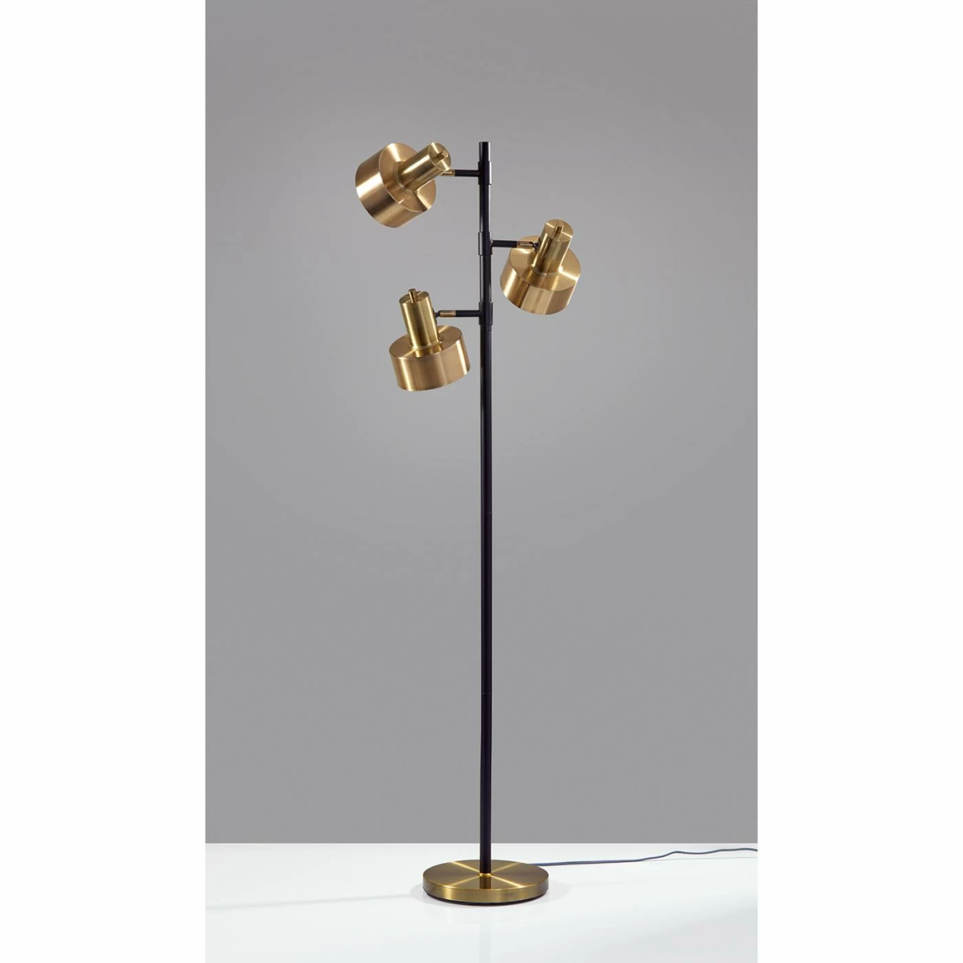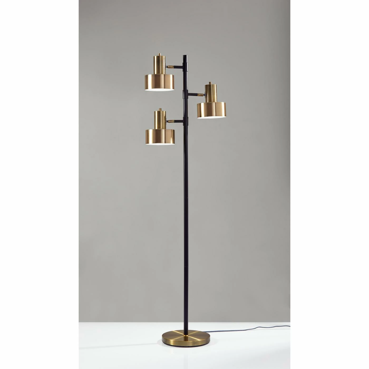 Topped by three adjustable shades, the Adesso Clayton Tree Floor Lamp offers ambient lighting, focused lighting, and everything in between. This floor lamp comes with a cloth-wrapped power cord that’s over 5 feet long, and it’s operated by a traditional rotary switch. Finished in shades of antique brass and matte black, this floor lamp lends a touch of elegance to your living room, dining area, or home office setting.