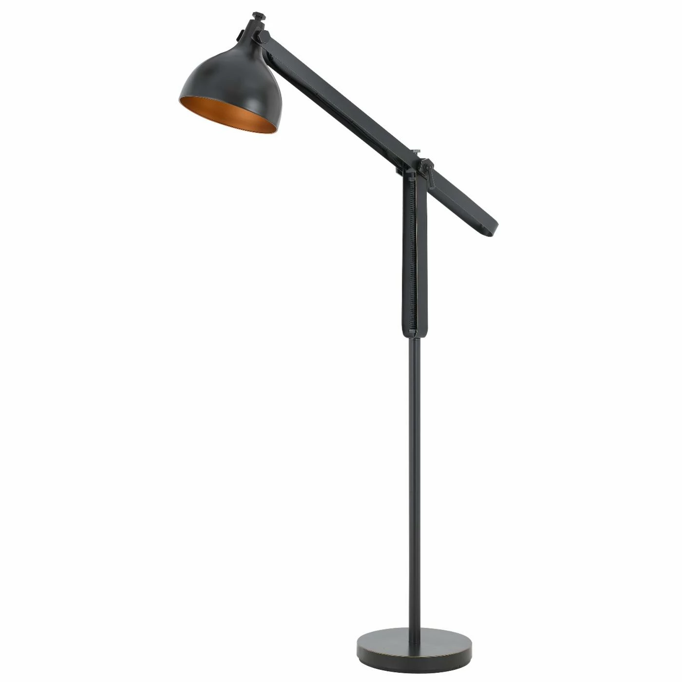 The Cal Lighting Latina Adjustable Floor Lamp is a stylish and versatile lighting choice that will work with a broad range of dΓ©cor styles. This floor lamp has a chic dark bronze finish with a decorative corkscrew base. Its dome shade has a copper lining that brings added flair.