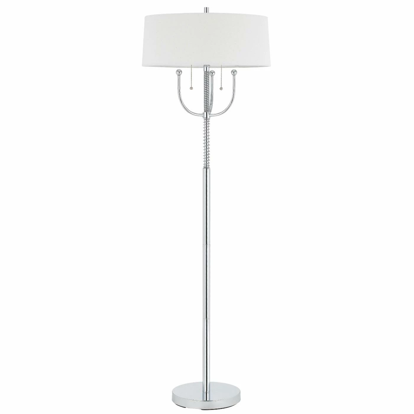 Use the Cal Lighting Lesina Floor Lamp to bring style and illumination to your space. It boasts a cool corkscrew design with curved detail at the top that brings extra flair. The chrome finish enhances the lamp’s contemporary vibe, and the white fabric shade ensures styling versatility.