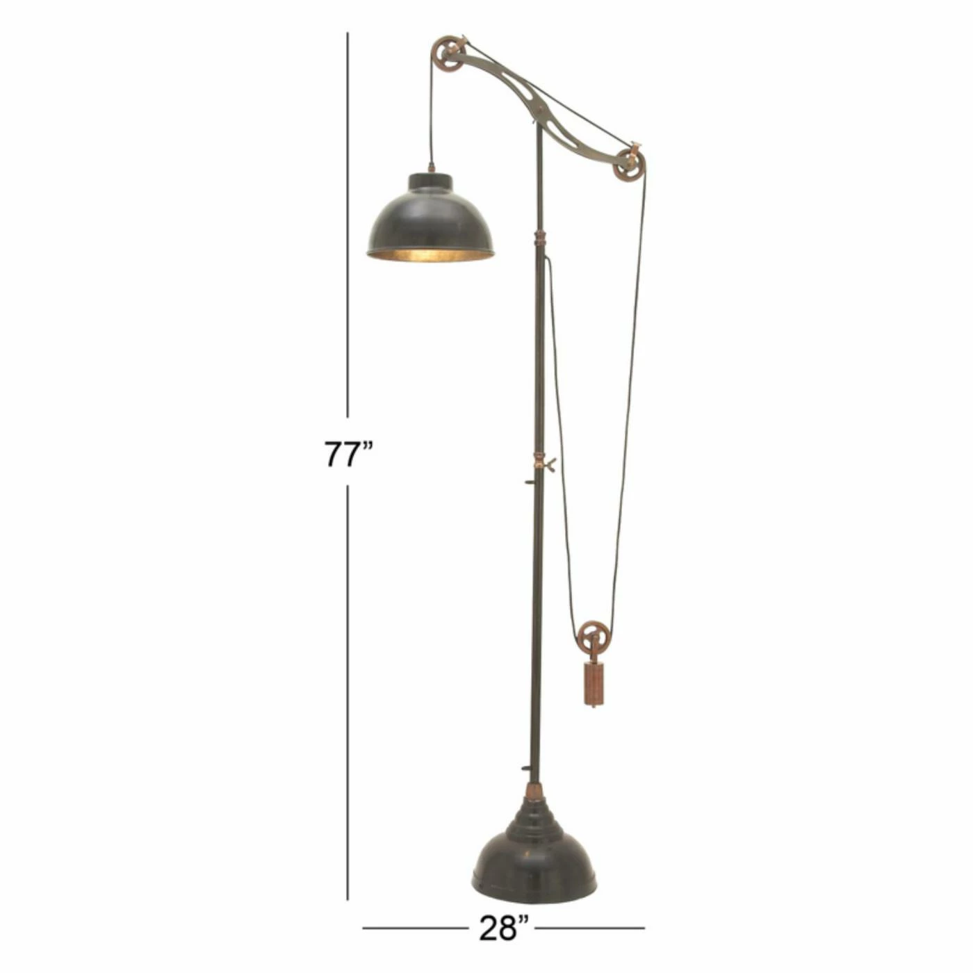 The DecMode 24515 Floor Pully Lamp features a unique pulley system that adds a vintage touch to this lamp. A round dome shade accents the light source. Its neutral finish complements many dΓ©cor styles, allowing this lamp to coordinate with your home design.