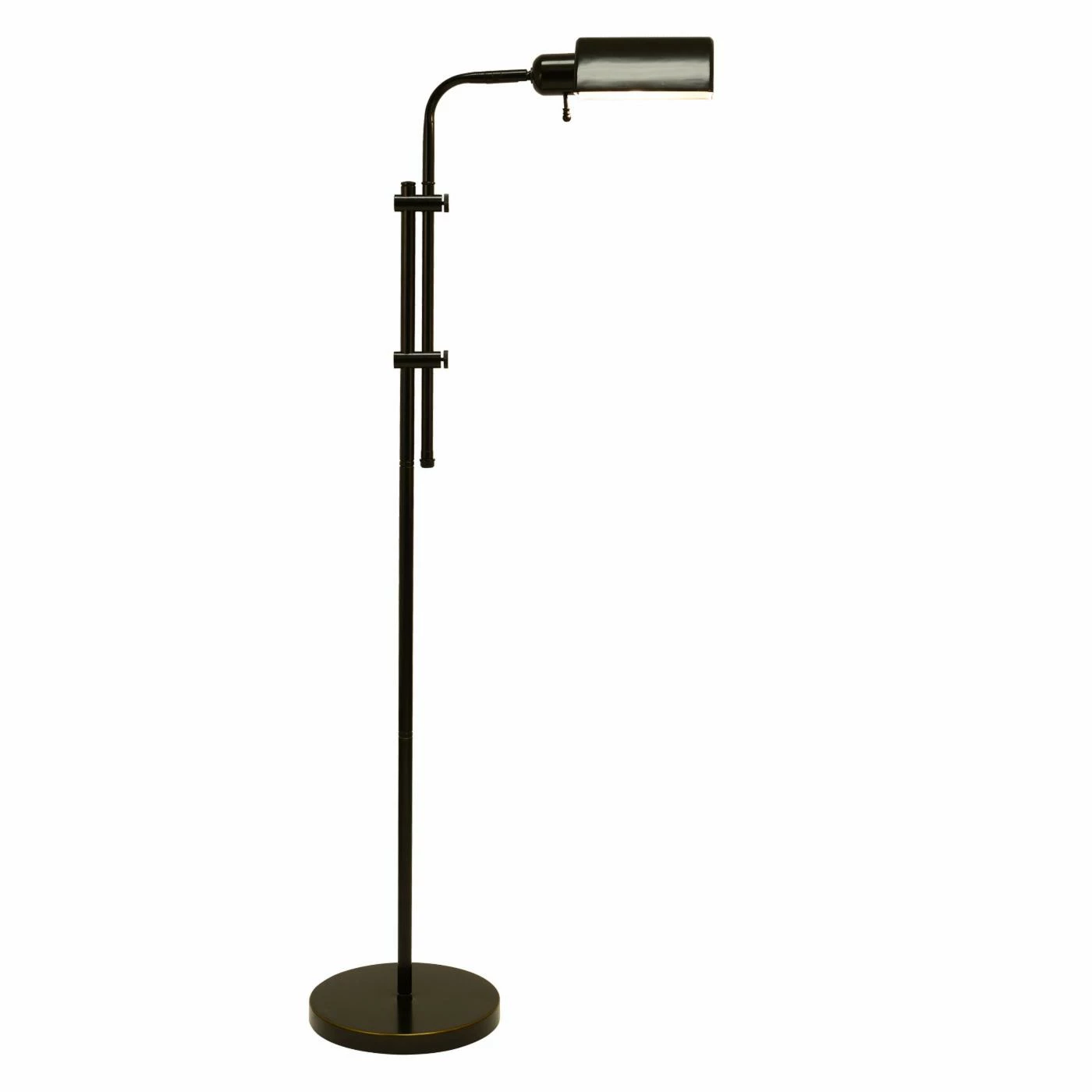 Drawing inspiration from antique industrial lighting, the Decor Therapy Pharmacy Floor Lamp adds a sleek touch to modern dΓ©cor. The oil-rubbed bronze lamp is height adjustable and features a pivoting shade, so you can direct its light precisely where you need it. An easily accessible on-off switch controls the lamp.