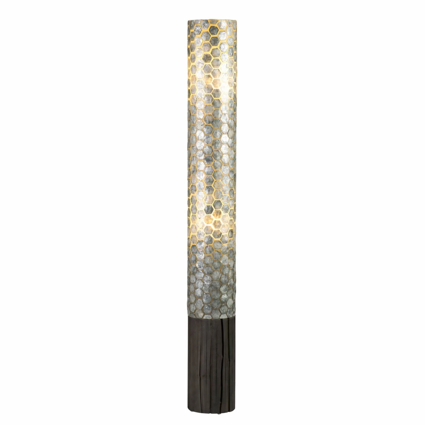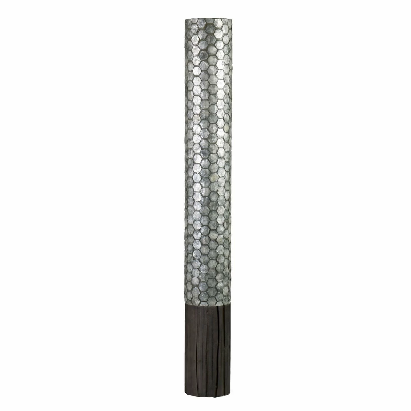 Sleek cylindrical shape lends the East At Main Camilla Floor Lamp a graceful profile. The tiled fiberglass shade is finished in a soothing slate gray. Two 40-watt incandescent bulbs inside provide warm ambient light in your space.