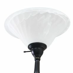 Enjoy some extra light for reading with the Elegant Designs Mother Daughter Floor Lamp, a two-in-one design with a task light and a torchiere for ambient lighting. Each light operates independently and is covered with a white marble glass shade that softens its glow. A dark restoration bronze finish gives the lamp an appealing aged look.