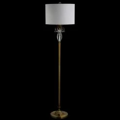 A faceted crystal pineapple graces the JONATHAN Y Adalyn LED Floor Lamp, making it a welcome addition to your foyer or front hall. A brass finish gives this floor lamp its classic appeal. It’s capped by a simple white cotton drum shade, smooth crystal finial, and silk cord. This floor lamp requires one 100-watt incandescent or equivalent bulb. An eco-friendly nine-watt LED bulb is included.