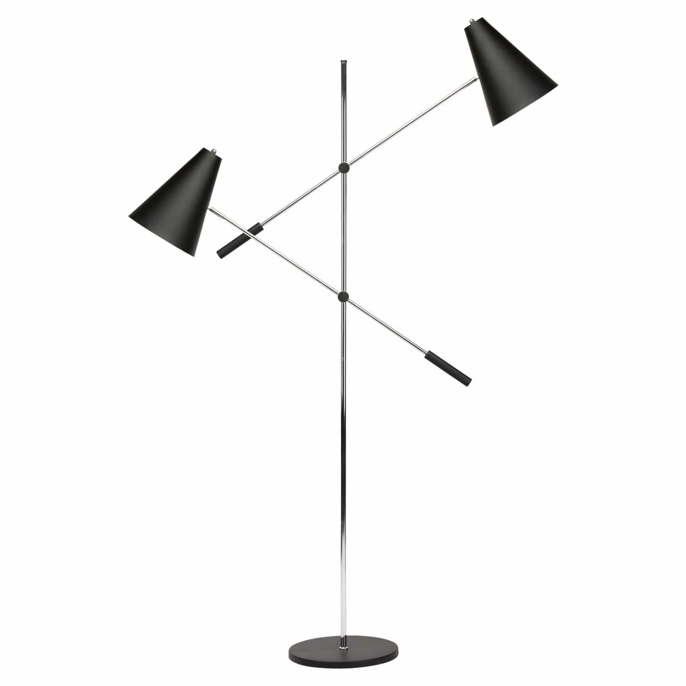 Brighten up two different areas of your living room or office with the Nuevo Tivat Double Floor Lamp. The sleek steel table lamp features two opposing arms equipped with tapered metal shades. Each arm pivots, giving you the ability to position the lights right where you need them. Equipped with a dimmer switch, the double floor lamp can produce bright task lighting or soft mood-setting illumination.