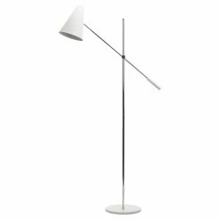 Whether you need bright light for reading or softer light to set a relaxed mood in your living space, the Nuevo Tivat Floor Lamp is the perfect modern floor lamp for your needs. A dimmer switch gives you the ability to adjust the brightness of the single bulb, and the tapered metal shade focuses the light to provide optimal task or accent lighting. For added versatility, the arm of the steel lamp pivots.