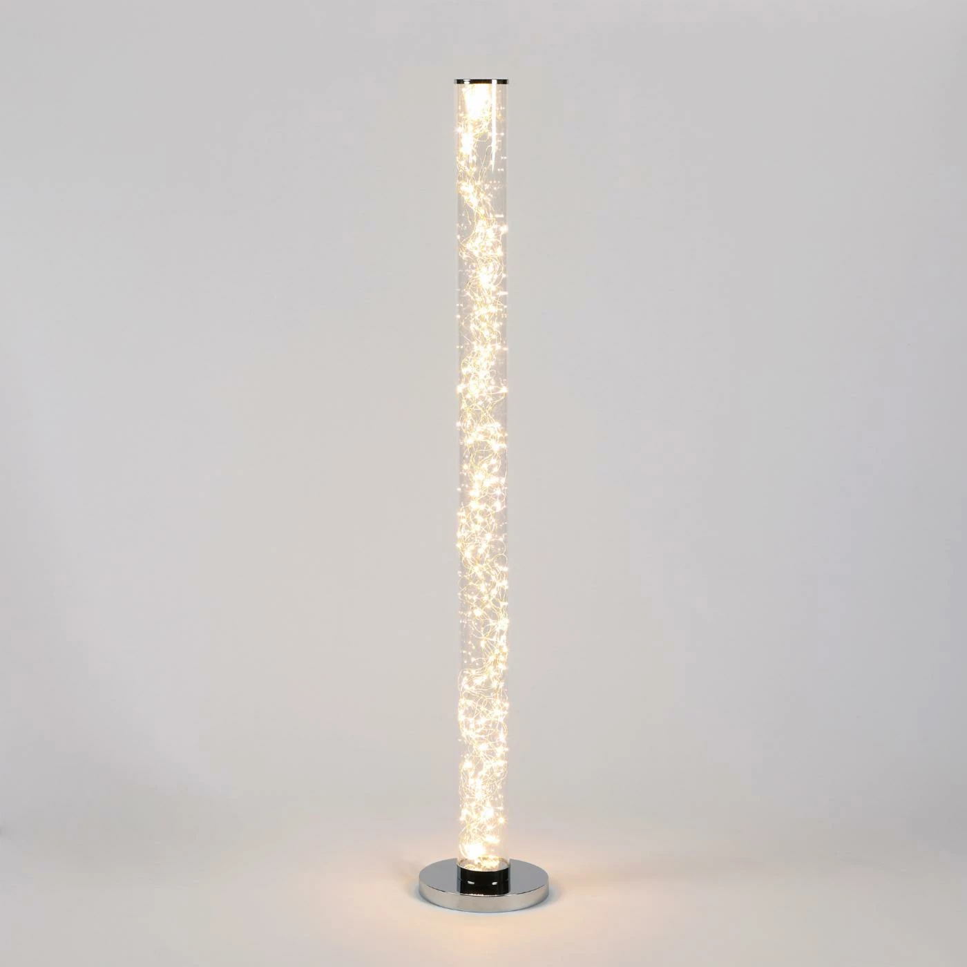 A white crystal sand rock acrylic tube shade gives the Ore International Minari Exposed Rope Column Floor Lamp its modern organic appeal. This stately floor lamp stands four feet tall and boasts an integrated rope strip for continuous bright light. It requires 360 eco-friendly LED rope bulbs, which are included.