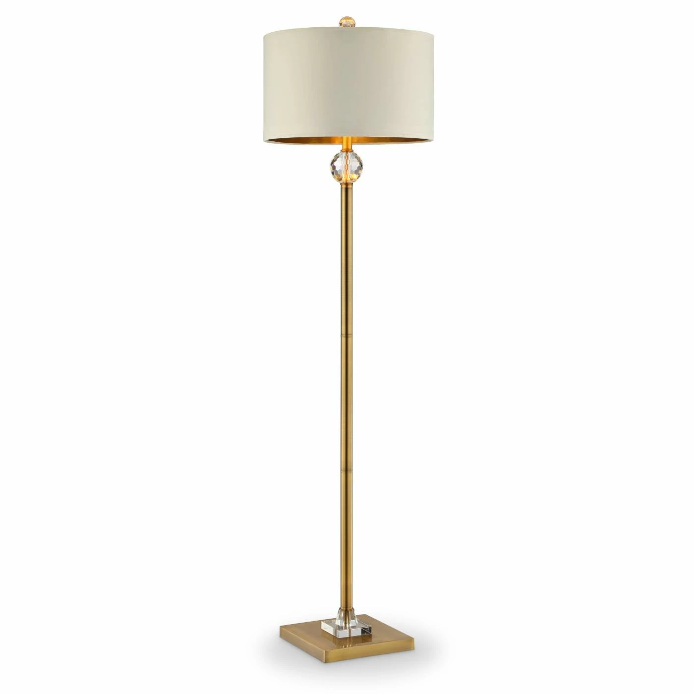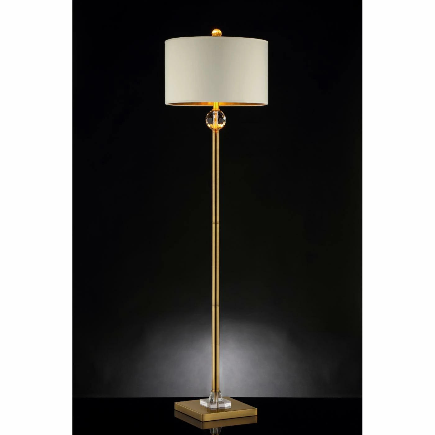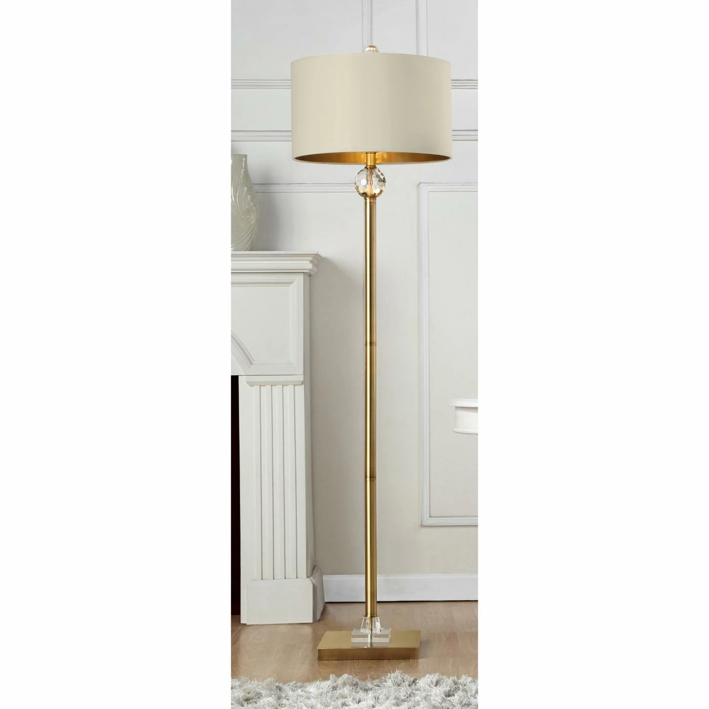 Create a glamorous, well-lit space with the Ore International Perspicio Floor Lamp. This metal floor lamp is in a gold finish. The off-white drum shade is also lined in matte gold. Inspired by Corinthian design, this floor lamp features a crystal orb detail and matching finial. One 100-watt, incandescent light bulb (not included) is required. Brighten up your home by using the rotary switch.