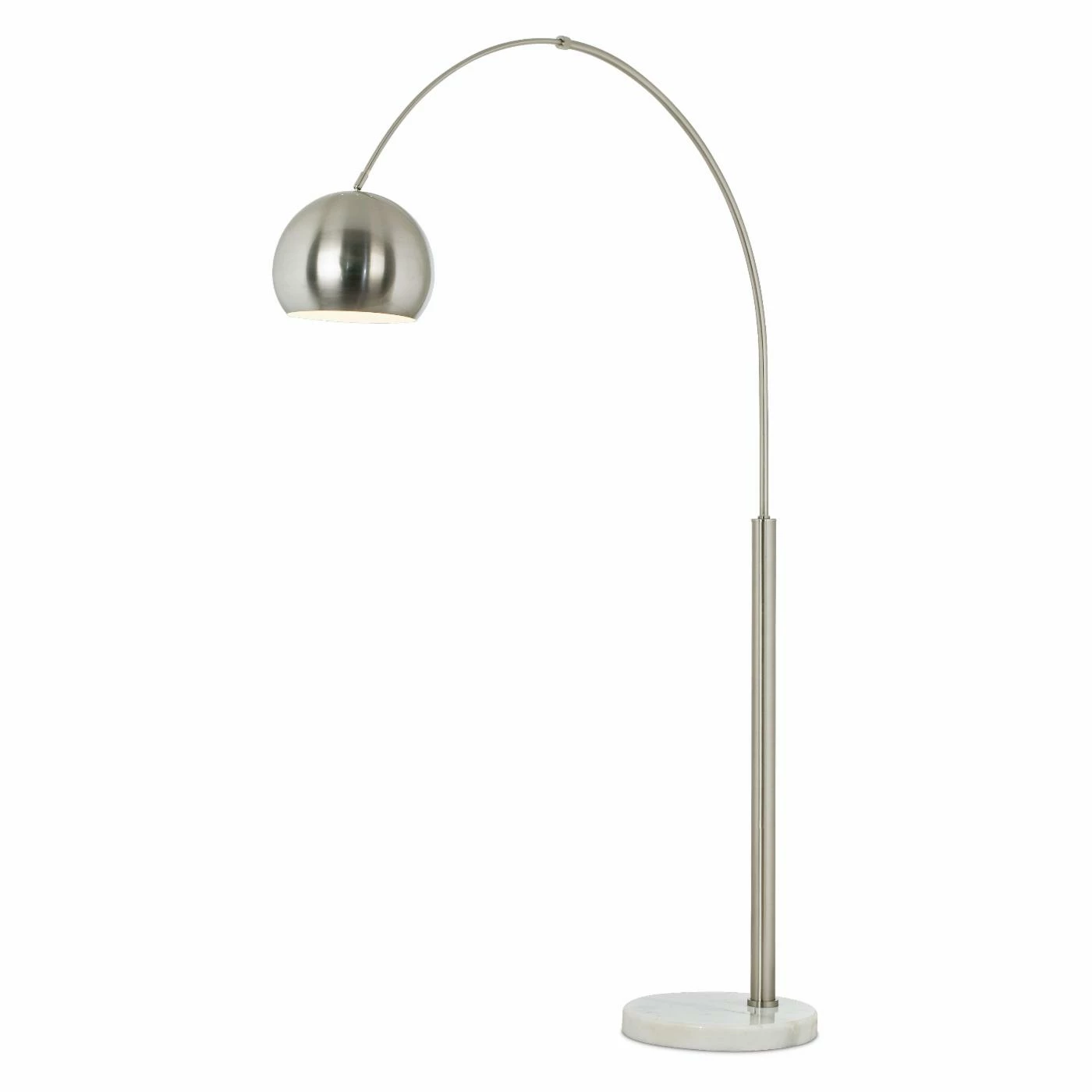 With the Pacific Coast Lighting Basque Floor Lamp behind your sofa or favorite chair, the whole room is bathed in soft, even light. This floor lamp boasts an arced body in silver finish supported by a white marble base. A modified drum shade of black fabric emboldens this floor lamp. It requires one 150-watt incandescent bulb.