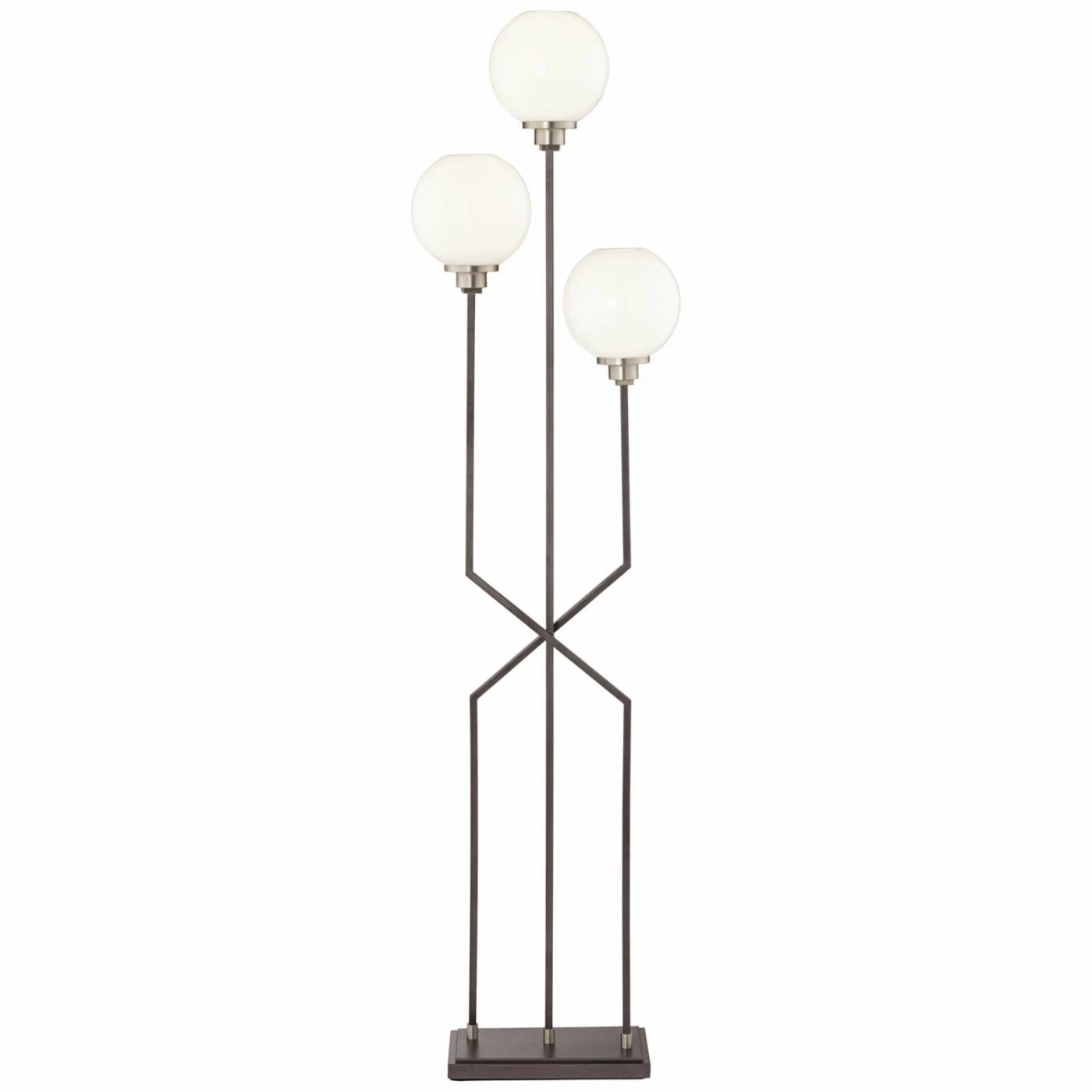 Angular, bold, and versatile, the Pacific Coast Lighting Off Set Frosted Globes Floor Lamp adds sleek Art Deco style to your home. A trio of glass globe shades makes this floor lamp luminous. It requires three 75-watt CFL bulbs (not included).