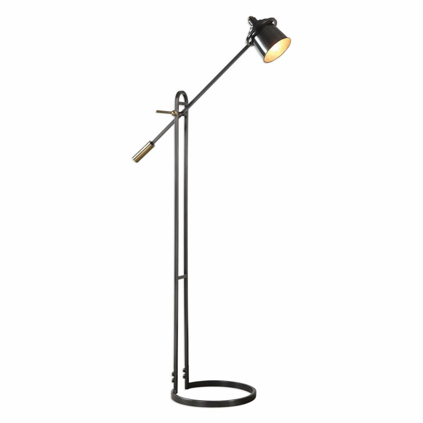 Lauded by readers everywhere, the Uttermost Chisum Dark Bronze Floor Lamp features a pivoting arm that can move from left to right and can also be raised or lowered. Thatβs why the Chisum excels as a reading or task light for your office or living room. The wide, stable base gives rise to two towering poles that support the arm. A rich oil-rubbed bronze finish ties in with rustic, industrial, or transitional dΓ©cor.