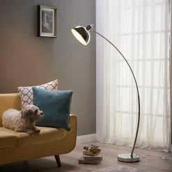 Love the versatility of the Versanora Arco Floor Lamp. Place it behind your favorite chair or allow this floor lamp to take center stage. Its modern design includes a slender, arched post, disk base, and domed metal shade. This floor lamp comes in select polished finish options. It requires one 60-watt incandescent bulb (not included).