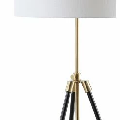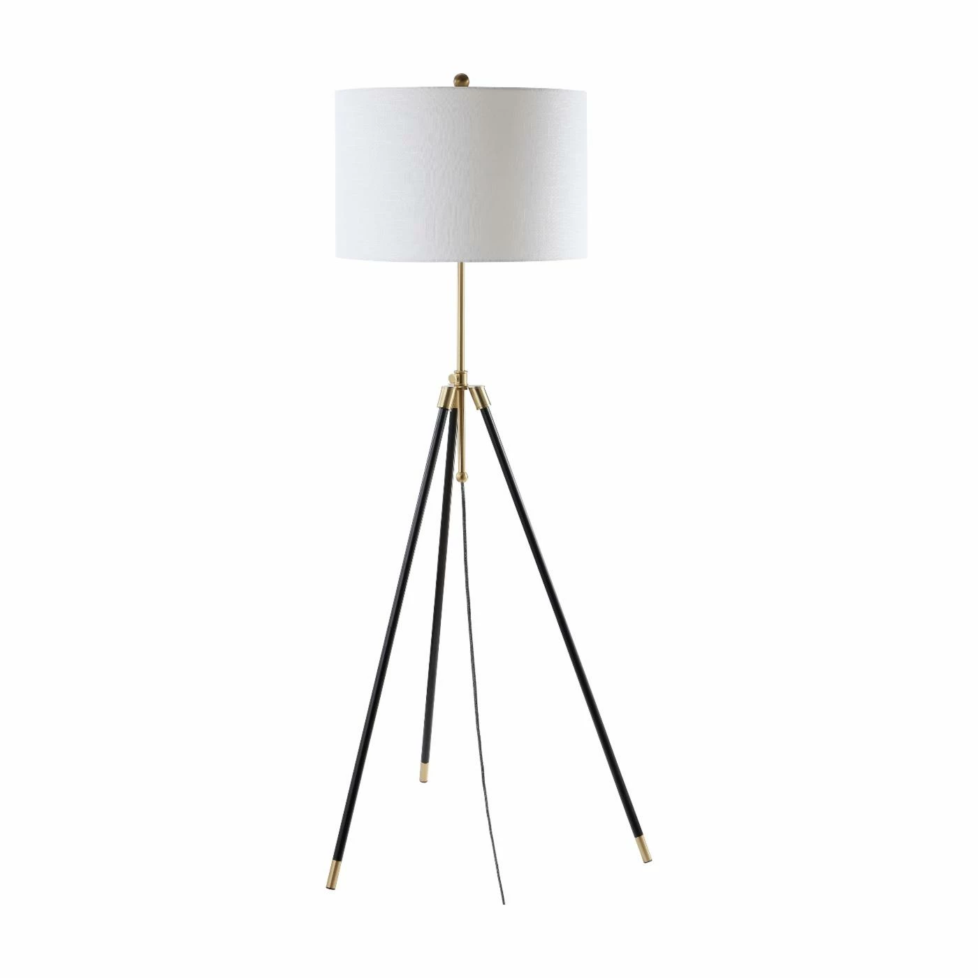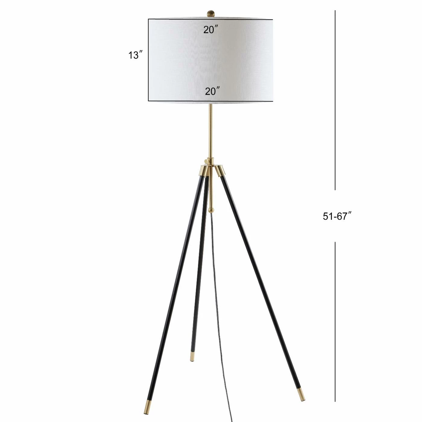 Add an architectural element into your living room or den by lighting with the JONATHAN Y Lucius Adjustable LED Floor Lamp. The slender tripod base comes in a classic warm brass and glossy black finish. An overscaled white cotton drum shade balances the proportions of this dramatic floor lamp. It requires one bulb and is compatible with any 12-watt LED, 100-watt type A, or 23-watt CFL. A nine-watt LED bulb is included.
