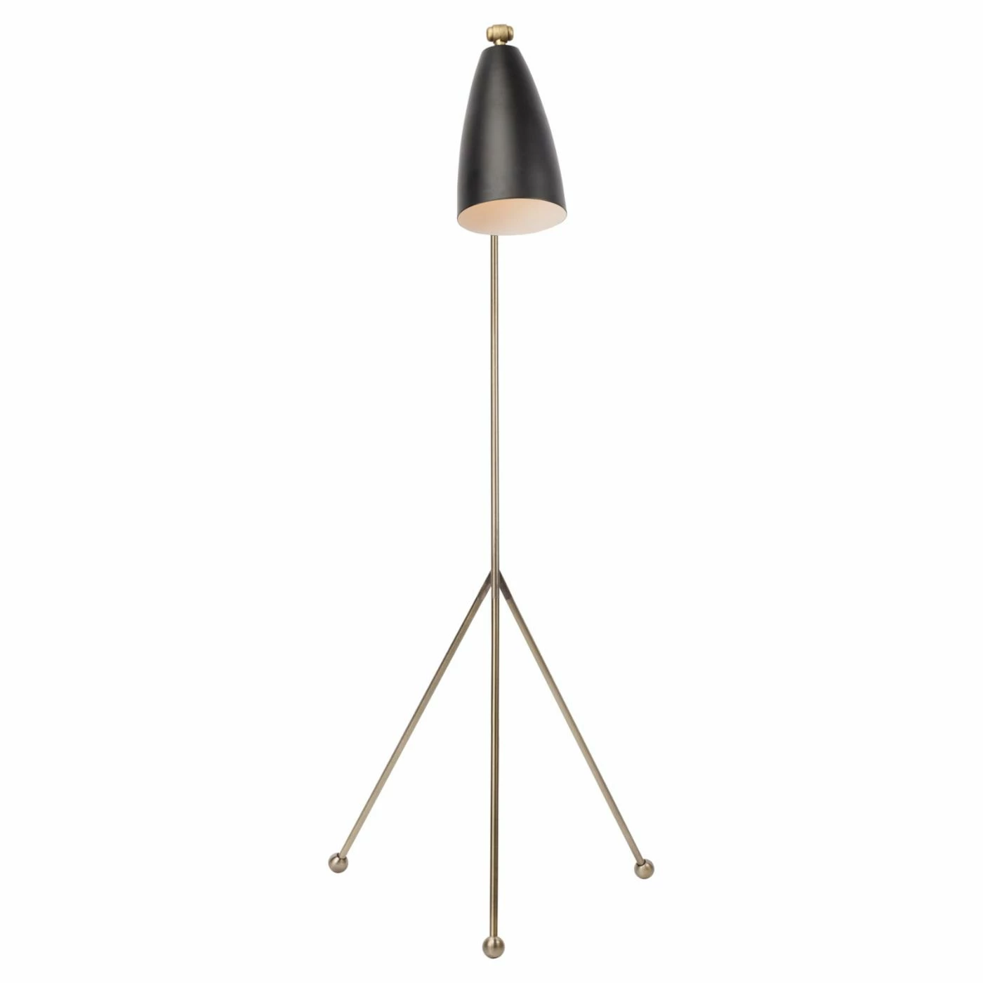 Get some extra task lighting in your living room, office, or bedroom with the Nuevo Lucille Floor Lamp. The contemporary steel floor lamp rests on a tripod base capped with petite ball feet and comes in your choice of available powder-coated finishes to complement your palette. A bullet shade focuses the illumination produced by the single bulb right where you need it.